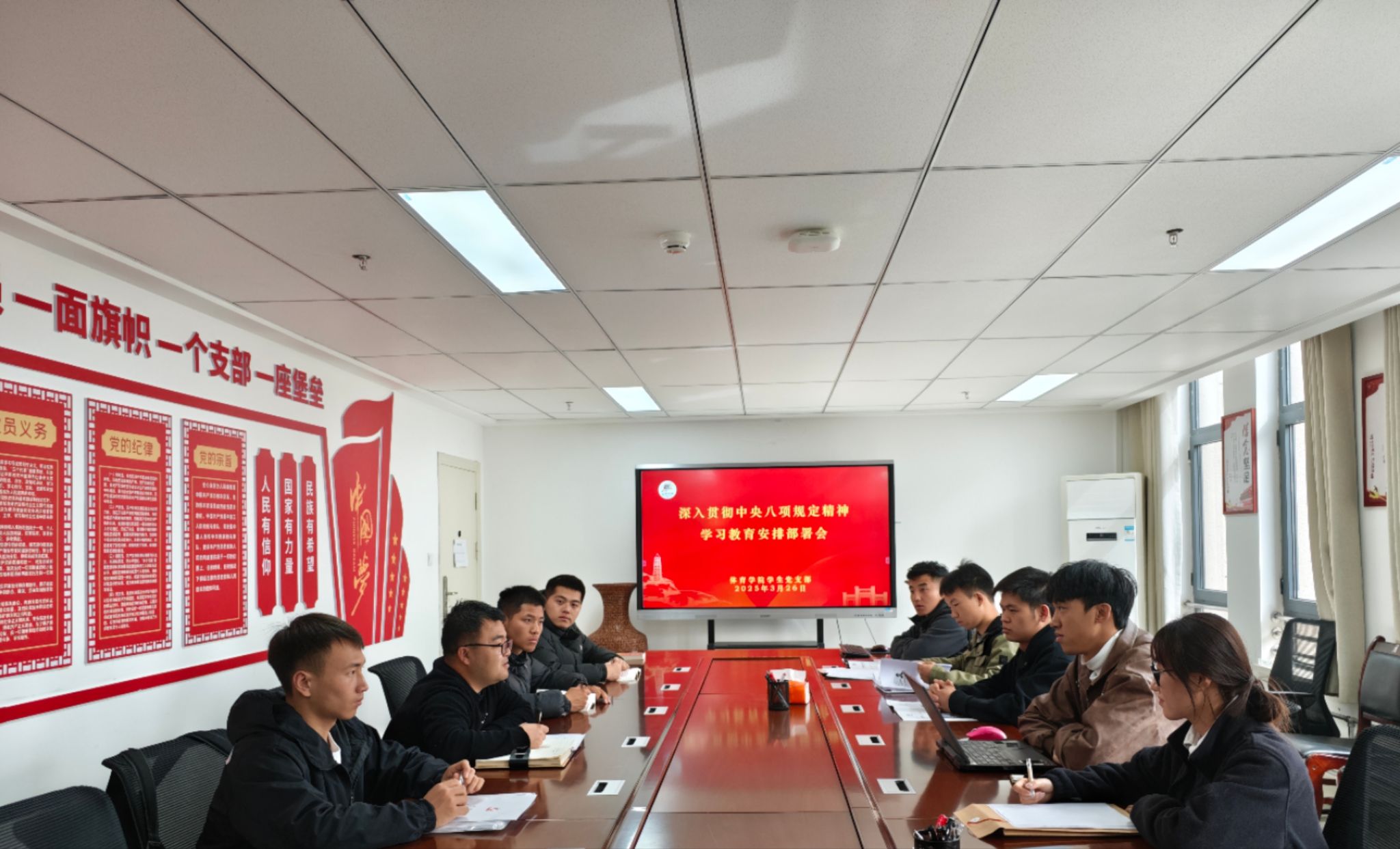 在党员活动室召开深入贯彻中央八项规定精神学习教育安排部署会。学院领导班子、行政人员、各党支部书记、辅导员参加会议,学院党委书记兰鸿涛主持。