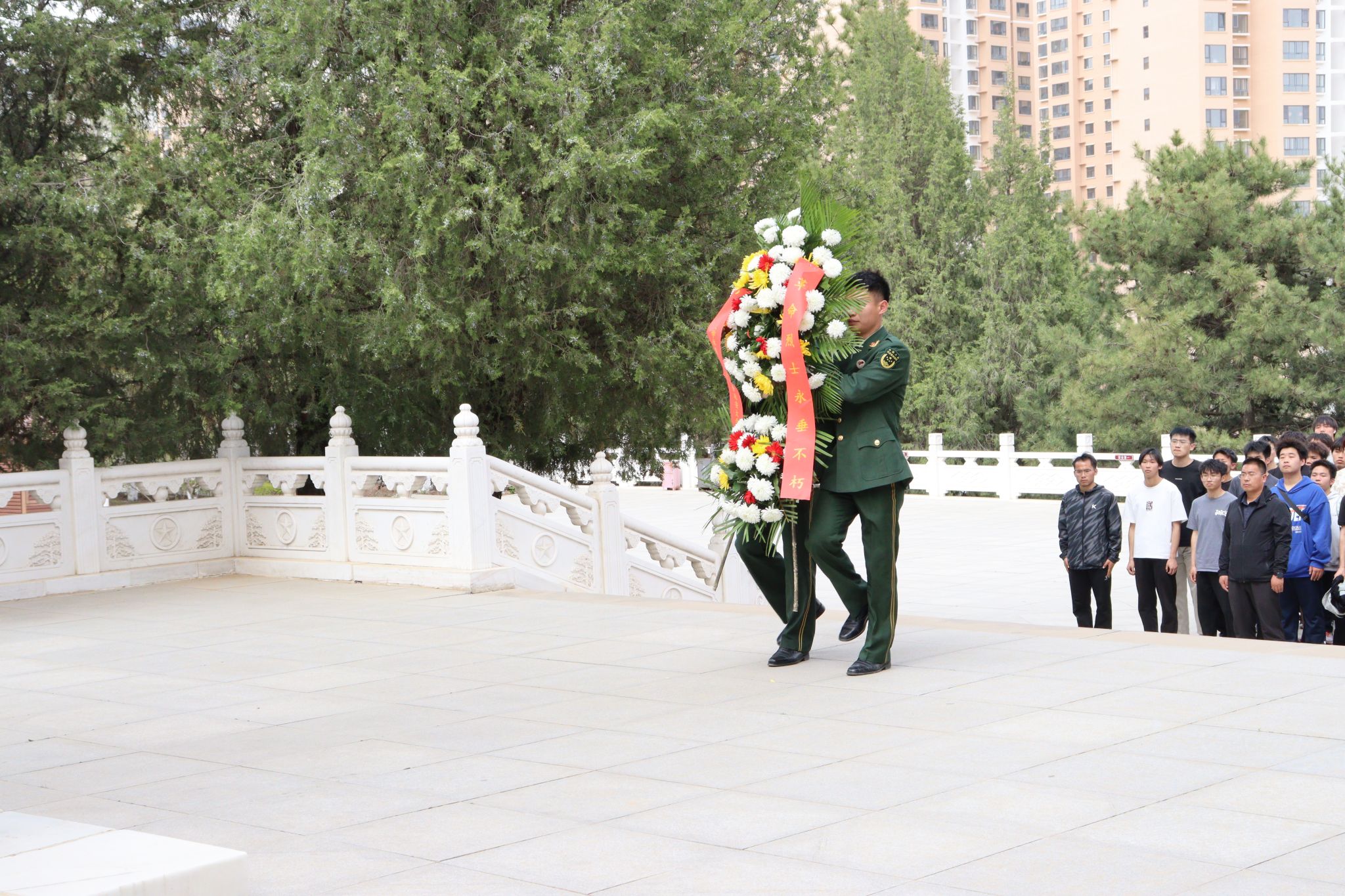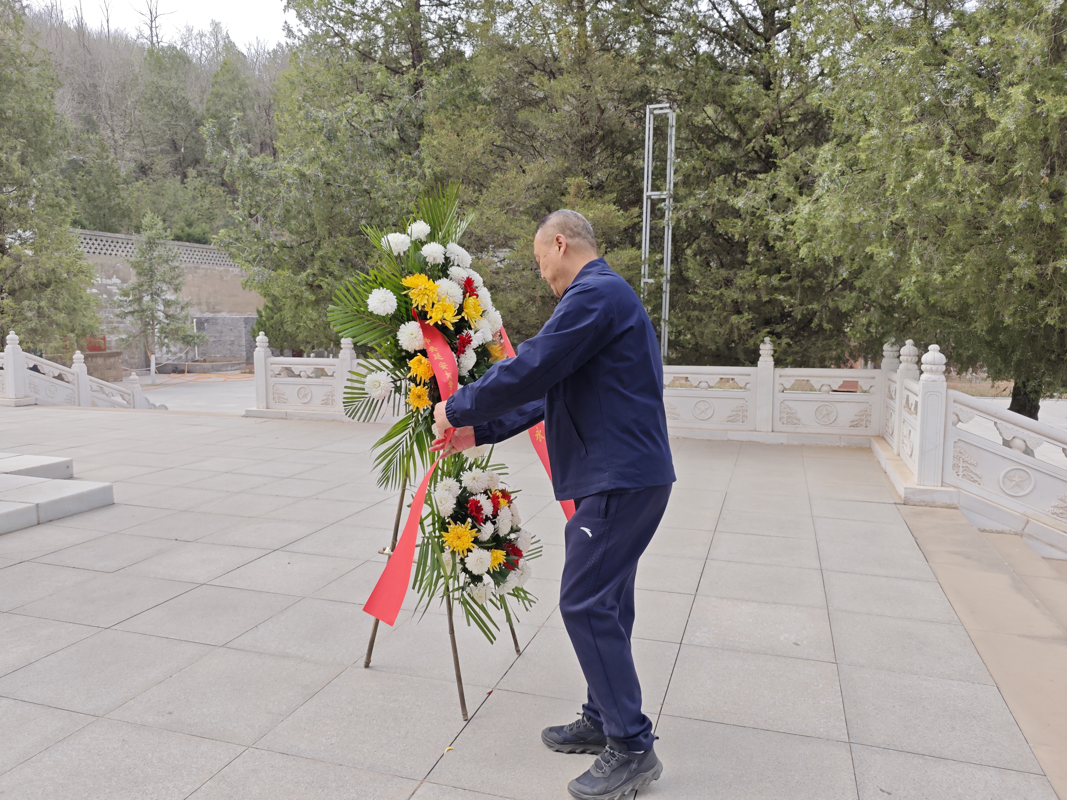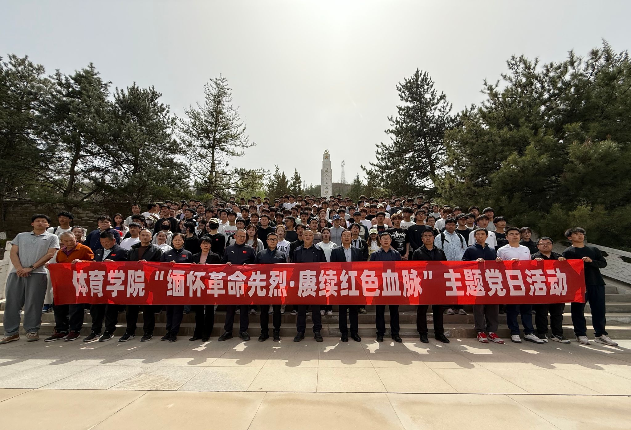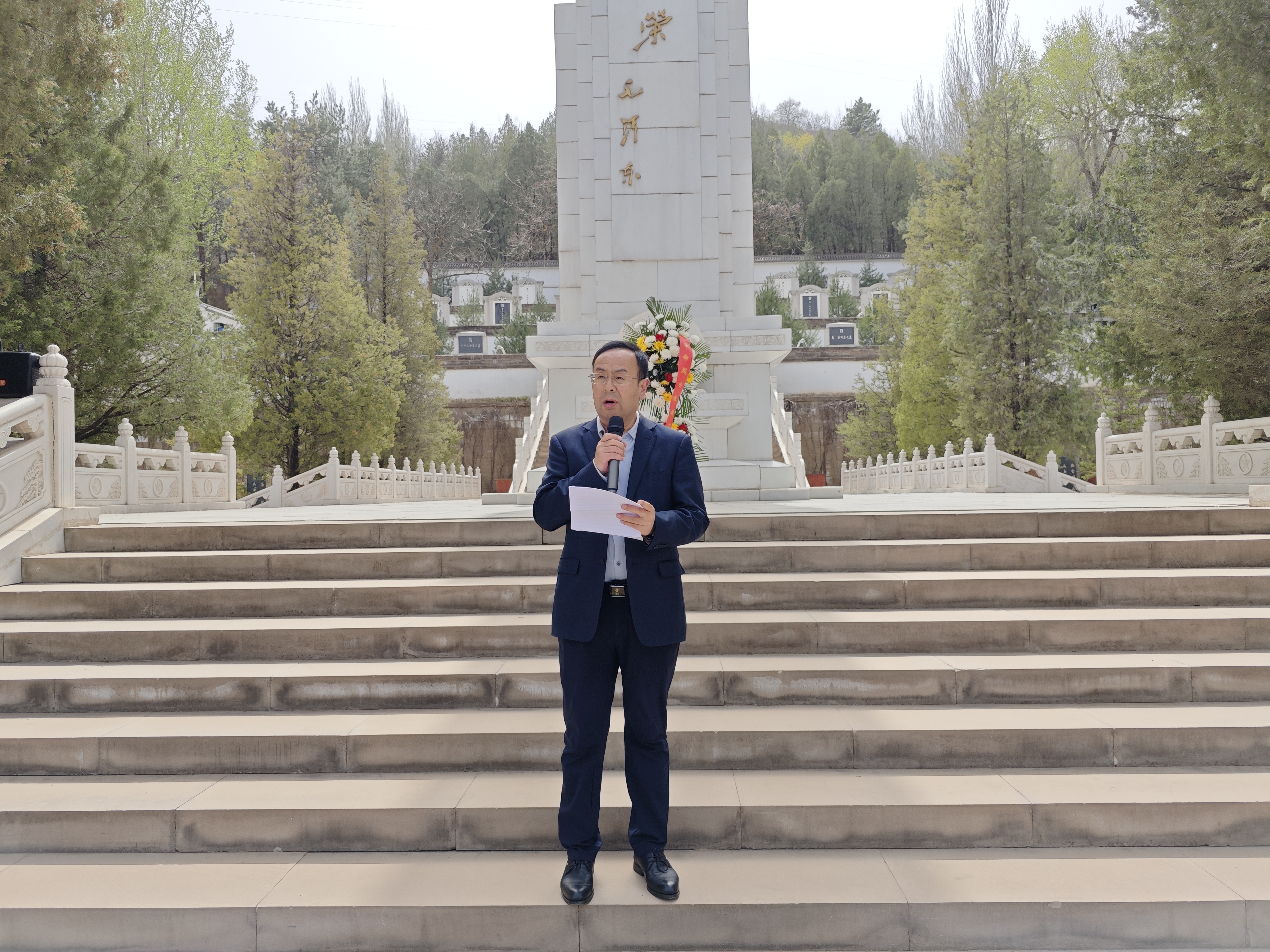 宗有智院长缓步走到纪念碑前,整理花篮缎带。全体师生向烈士纪念碑鞠躬致敬,将哀思与敬意敬献给长眠于此的革命先烈们。