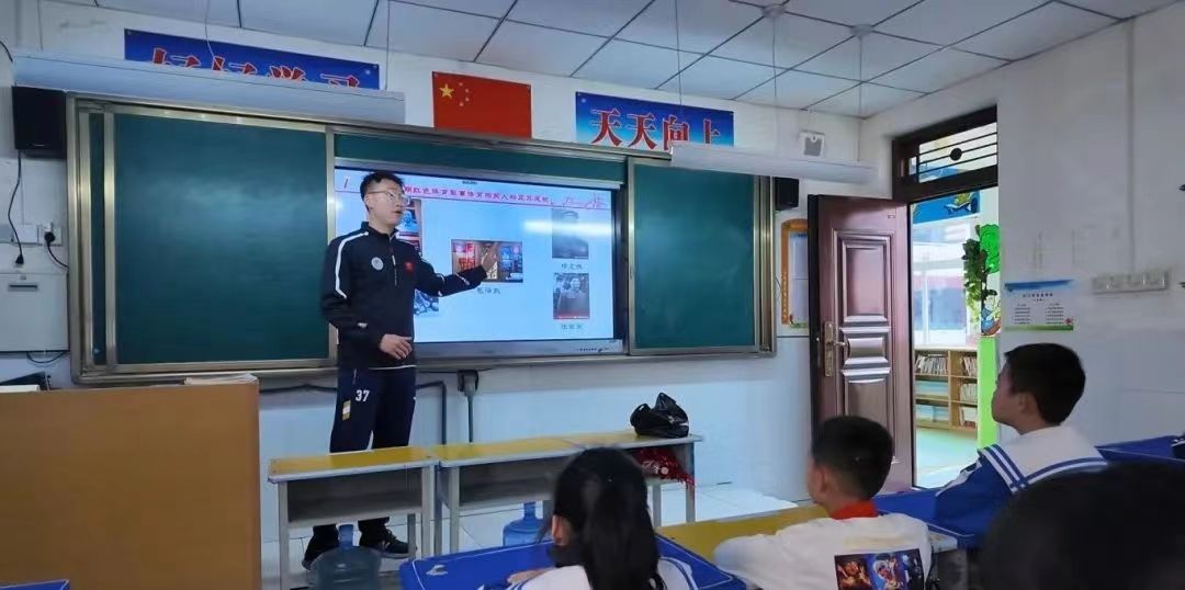 红色体育宣讲走进小学课堂,学生红色体育宣讲团张海鹏、邱苗苗等同学进行了红色体育故事宣讲,生动的演讲和活泼的互动,加深了小学生们对延安时期红色体育的深入理解,进一步坚定了孩子们为发展体育事业贡献力量的决心。