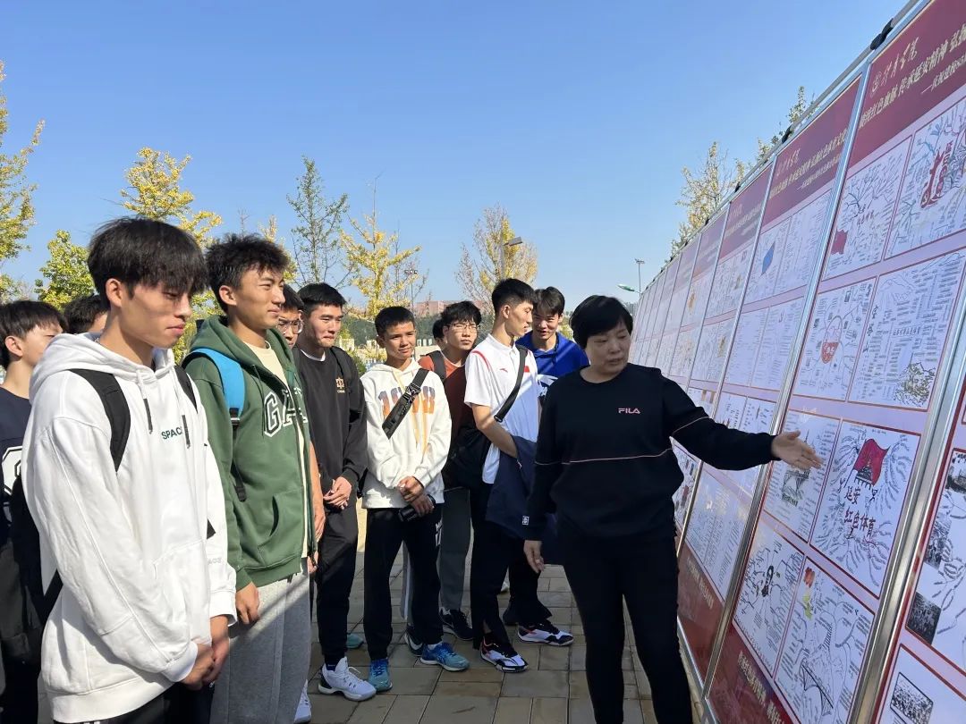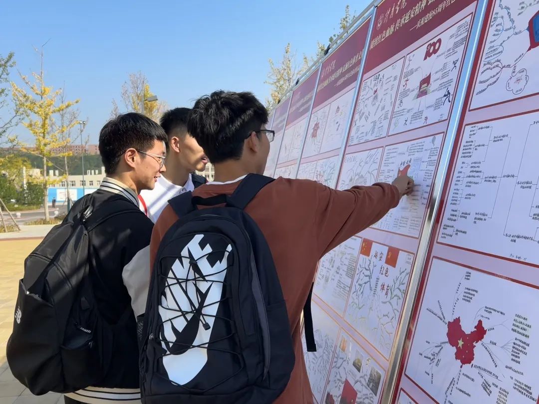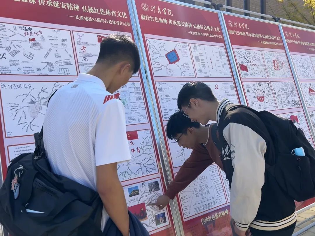 组织学生创作延安时期红色体育思维导图作品168幅,通过专家进行遴选,共展出88幅作品。学生作品以不同方式展现了延安时期红色体育的形成与发展脉络,以及延安时期体育活动的开展情况、发挥的重要作用。展览时,张红玲老师与学生进行互动交流,向学生讲解举办作品展的目的和意义,延安时期的红色体育以及对新时代体育工作的启示等内容,多名教师、学生观看,氛围热烈浓厚。