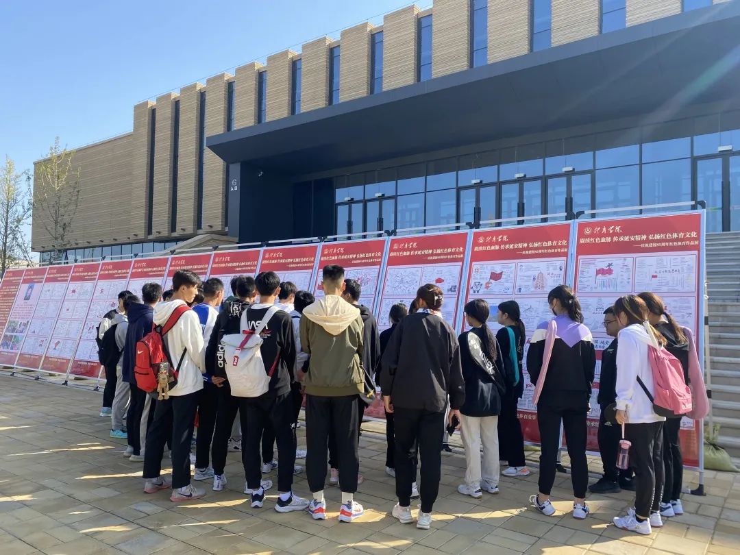 在新城校区体育中心举办“赓续红色血脉 传承延安精神 弘扬红色体育文化”延安时期的红色体育作品展。