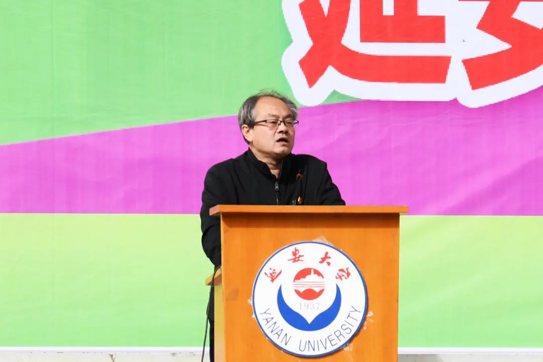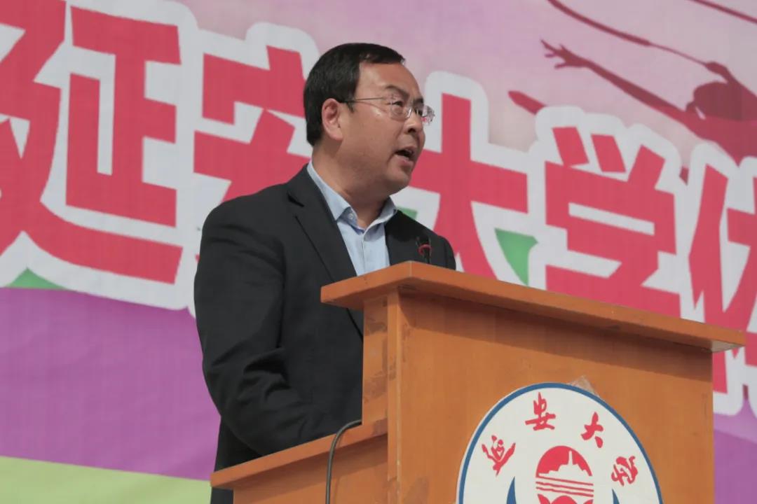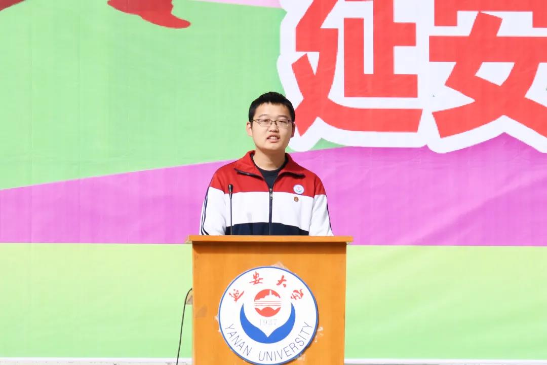 《万名学子学党史,网上重走长征路”主题教育活动实施方案》文件精神,承担长征中的重要节点第六站“四渡赤水”党史宣讲任务,将在线上线下开展专题报告、主题宣讲、红色体育运动会、经典诵读等多种形式的学习教育活动,勉励全体学生身体力行、积极参与,以此激发爱党、爱国、爱校热情,努力成长为德智体美劳全面发展、具有延安精神特质的时代新人。兰鸿涛对全体学生提出三点期望:一是通过宣讲活动,认真感受党的百年风华,汲取奋进力量,传承红色体育精神,弘扬红色体育文化,坚定正确的政治方向,发扬爱国奉献的革命精神;二是通过宣讲活动,认真重温四渡赤水的壮烈史诗,感悟祖国强大的来之不易、幸福生活的来之不易;三是通过宣讲活动,深切感受肩负的历史使命,“坚定前进信心,立大志、明大德、成大才、担大任,努力成为堪当民族复兴重任的时代新人,让青春在为祖国、为民族、为人民、为人类的不懈奋斗中绽放绚丽之花”。