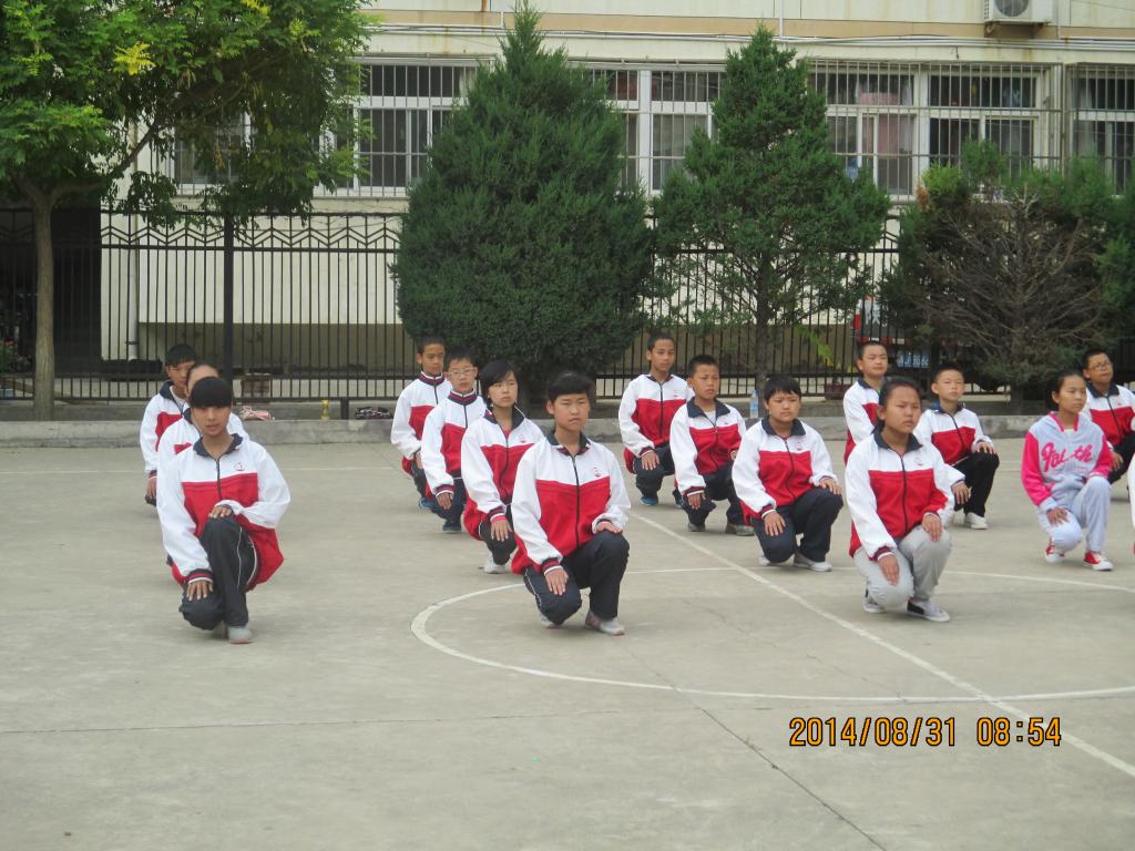 实习生贾植、狄立伟、柏健坤、马小强、晁悦、钱义梅、秦晓霞、邬秀八人于8月27下午到达延安市宝塔区第一中学承担初一新生的军训任务,即刻展开为期三天的军训工作。