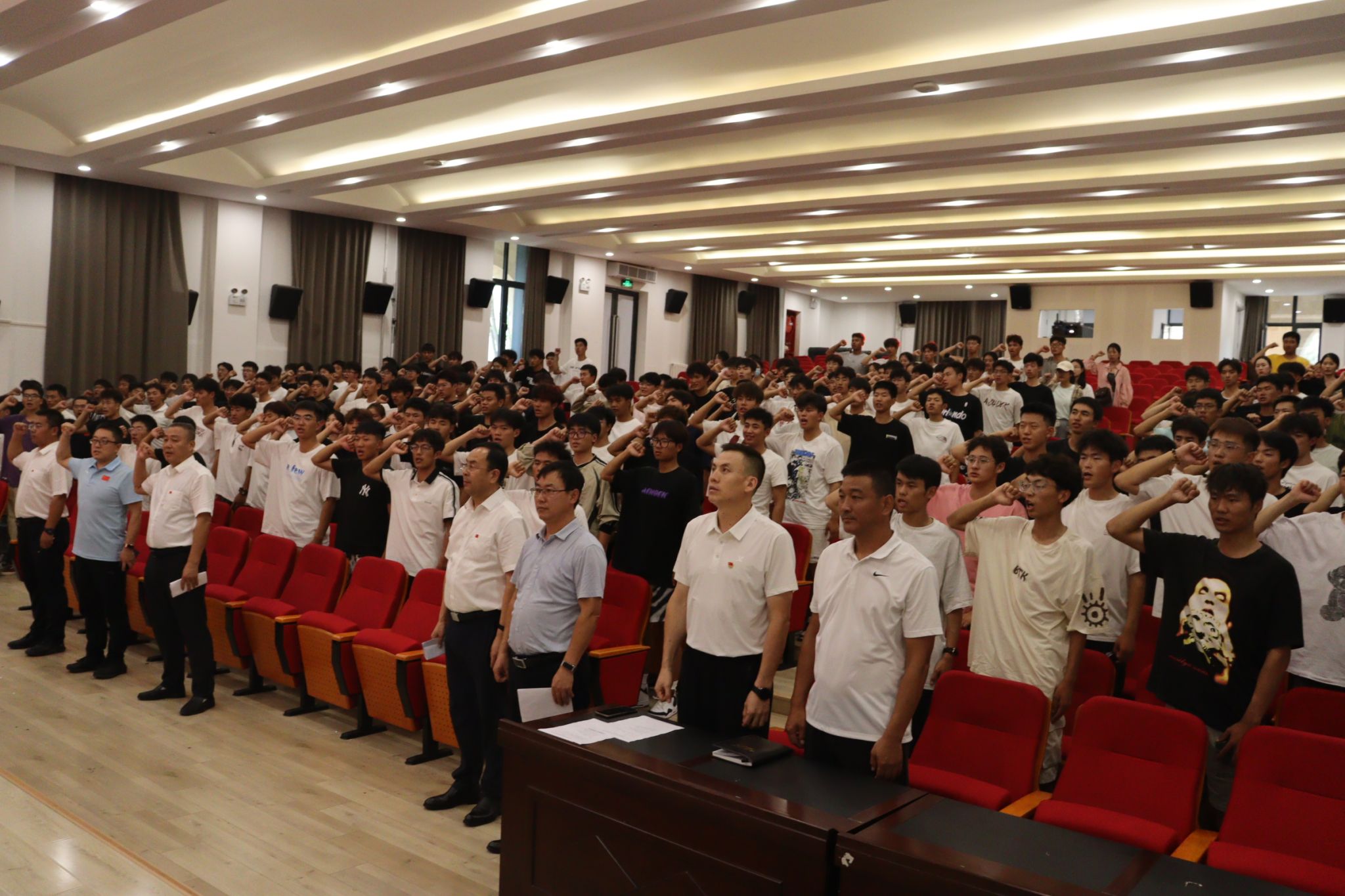 体教2023级于馨怡同学作为在校生代表进行发言,2024级研究生贾咏荷、本科生王思豪同学代表新生发言,运动康复24级张伟萱同学带领全体新生进行了入学宣誓。