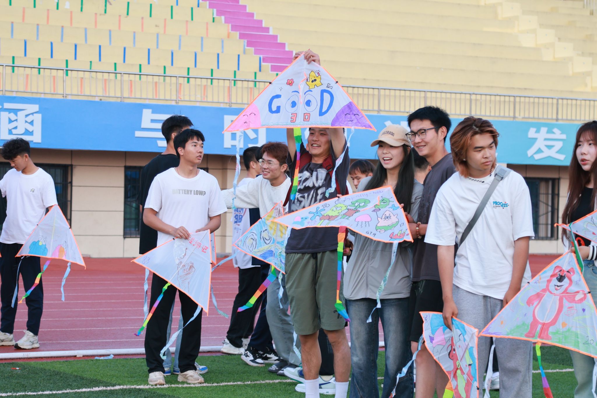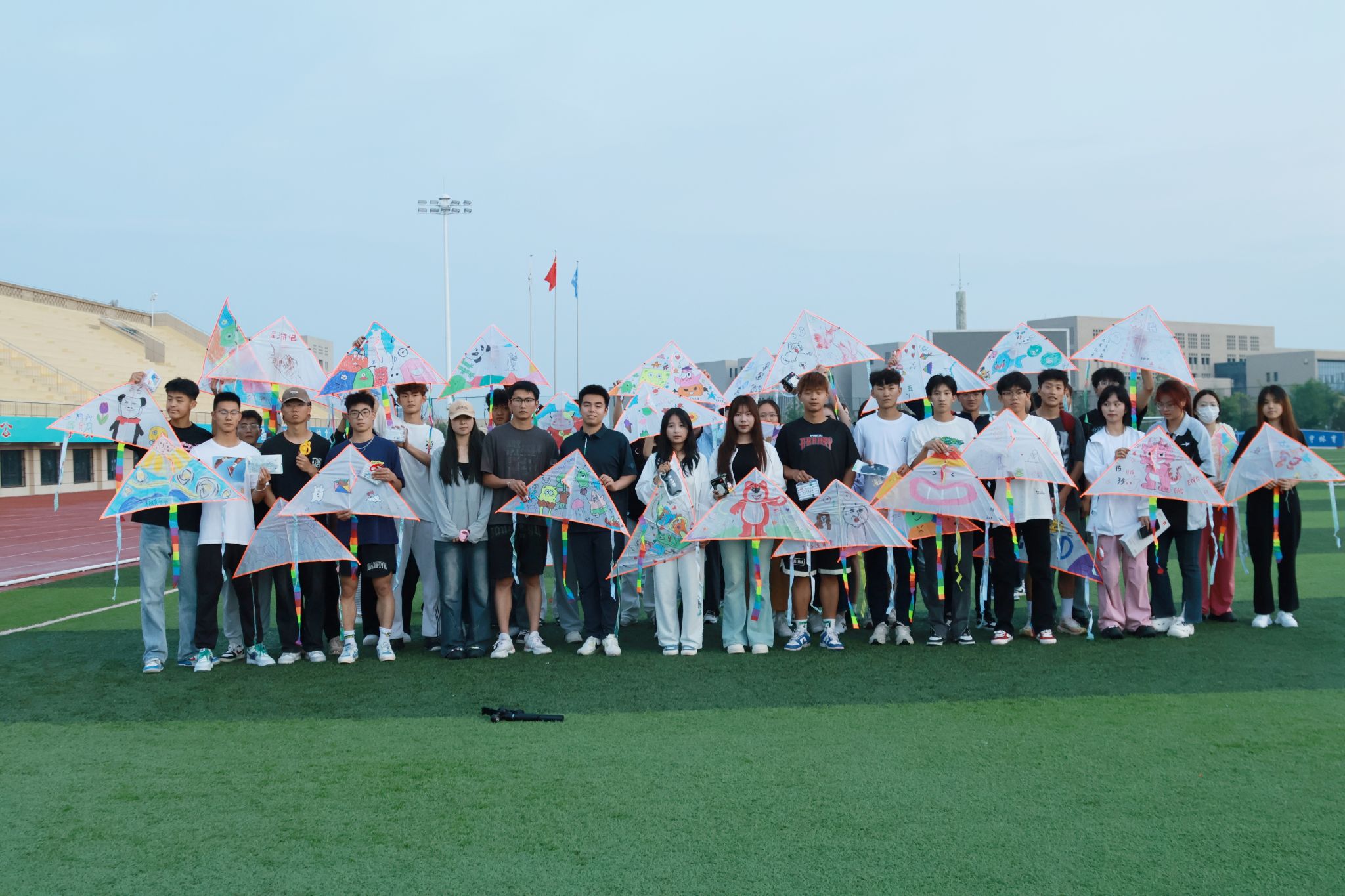 在风筝绘制环节,同学们尽情发挥个人想象力,通过画笔在风筝上绘画出一幅幅生动的图画,以不同的图形和色彩展现自己的内心世界。随后,同学们带着亲手绘制的风筝在操场上放飞,寄托着希望和梦想的风筝腾空而起,随着风筝线的逐渐放长,同学们的思绪也随之飘远。经过紧张而精彩的放风筝比赛,共评选出“最佳画手”2名,一等奖1名,二等奖3名,三等奖10名,优秀奖50名,并向参与活动同学颁发了精美礼品。