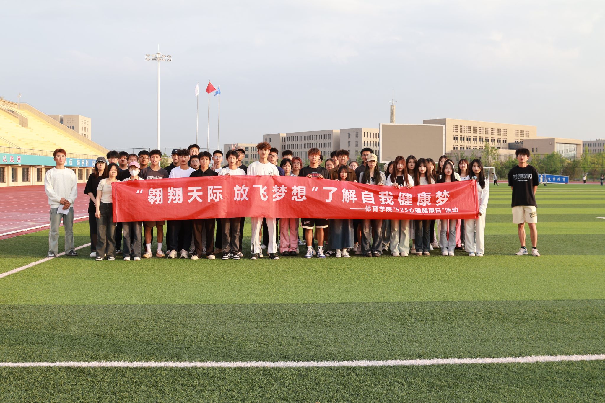 承办的“5·25翱翔天际 放飞梦想”心理健康宣传教育主题活动在新校区田径场举行,本次活动由*91直播