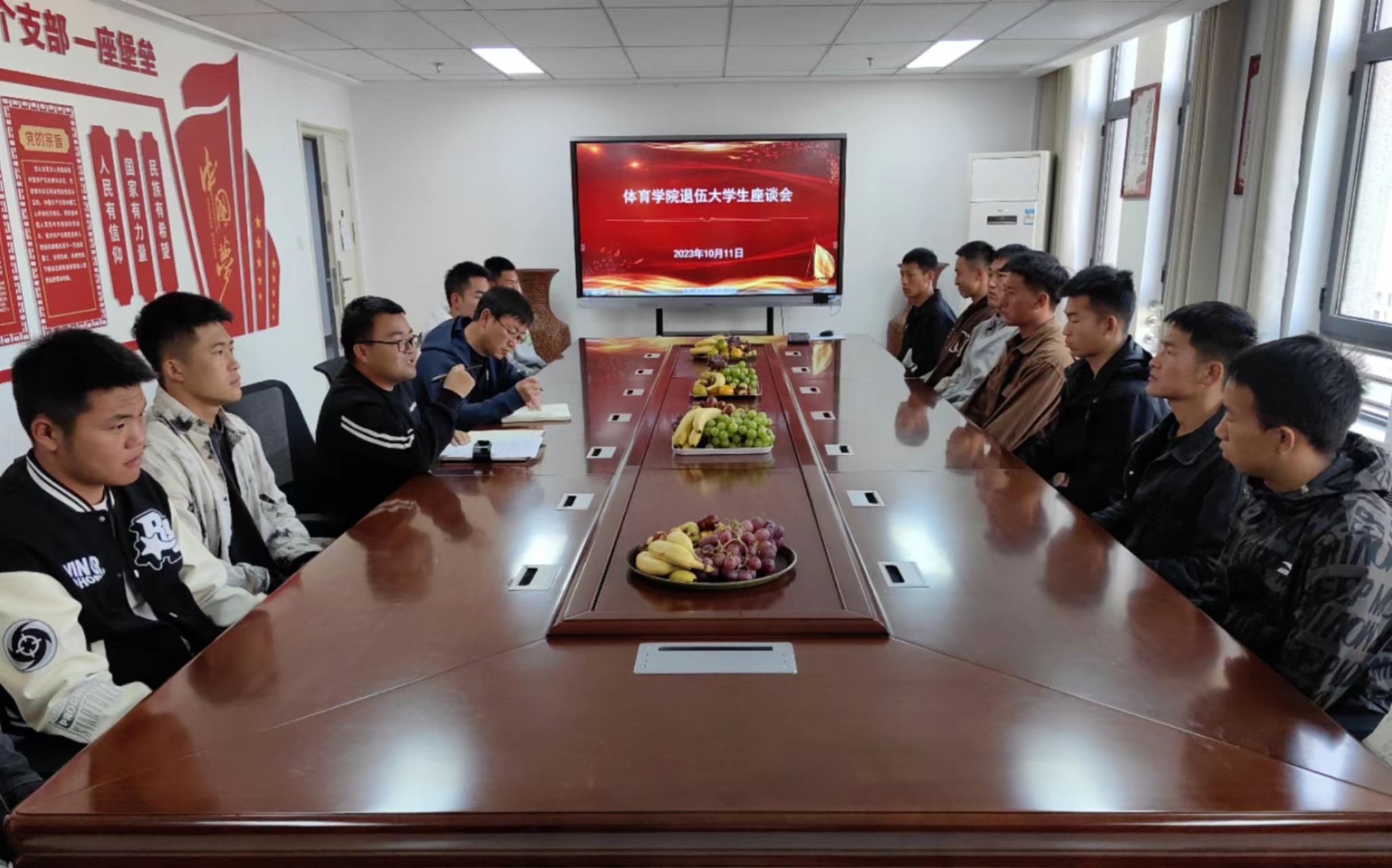 为深入了解退役复学大学生返校后的学习、思想及生活等方面情况,扎实做好退役复学学生各项工作,10月11日,*91直播 在党员活动室举行了退役复学大学生座谈会,学院党委副书记徐海阔、辅导员李才才以及退役复学大学生参加了会议。
