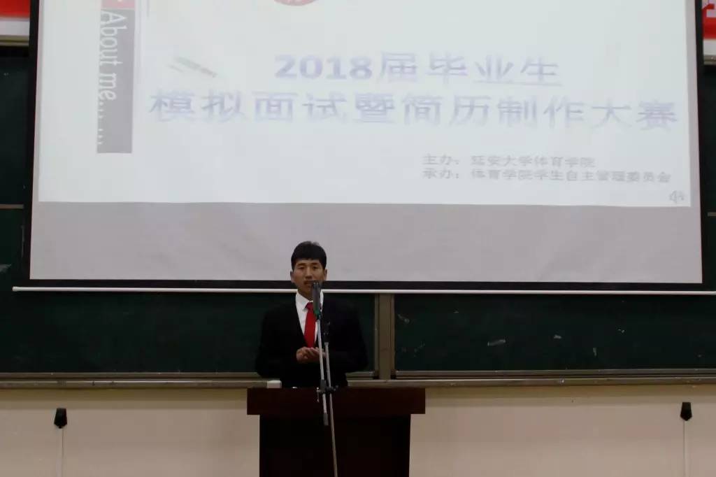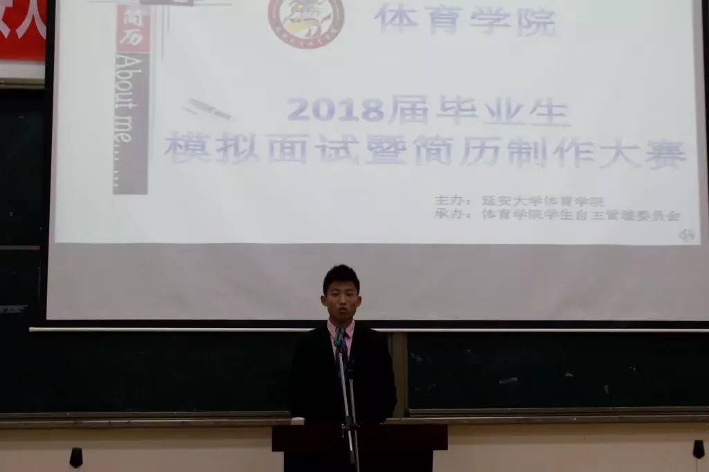 学院根据学生处的工作安排结合学院实际情况,从3月底开始策划大赛,4月底开始组织实施,模拟面试与简历制作两个分赛场同时进行。模拟面试经过班级初赛,年级复赛,最终10名同学进入决赛。决赛设置的招聘职位为中小学体育教师,模拟面试的同学通过自我介绍、说课以及考官问答三个环节展现自我。各位评委针对学生说课内容、个人能力规划以及简历制作等方面进行提问,并传授了相应的经验和技巧。模拟面试结束后,卢忠瑾老师分别从大赛的筹备组织情况,说课及专业展示,面试准备与临场应变等方面进行了点评。简历制作大赛中2018届144名同学全部提交了精心制作的个人简历进行角逐。最终,汪益云同学获得模拟面试一等奖,何涛、宋晓锦、王兴奋同学获得了简历制作大赛一等奖。
