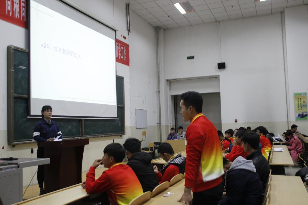 《体育概论》课程结合课改项目创新课堂形式,于12月21日晚在第五阶梯教室举办了一场别开生面的知识竞赛。本次知识竞赛的参赛选手由本学期开设《体育概论》课程的16级4个体教班组成,每班派出6名参赛选手,学生自主管理委员会导航学长带领各班班级自主管理委员会组织竞赛。