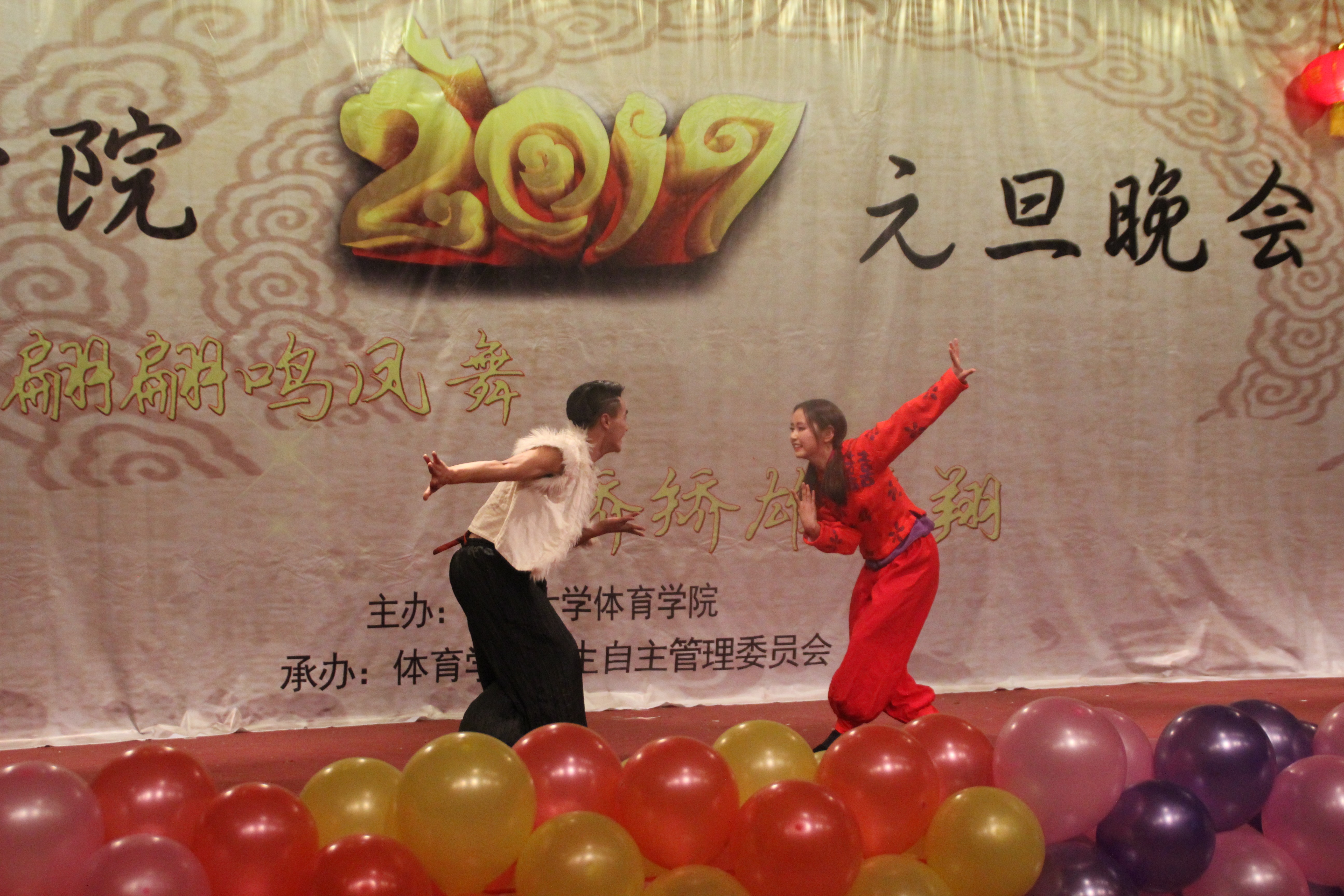 晚会开始时,院长郑兵老师致新年贺词,以“感谢、希望、祝福”为主题总结了过去一年的耕耘与收获,憧憬了未来一年的奋进与发展,并代表学院送上新年的祝福。晚会以欢天喜地的秧歌开场,以气势磅礴的腰鼓收尾,中间辅以热情洋溢的健美操,旋律悠扬的二胡、唢呐独奏,风味十足的陕北风情舞蹈,感念父母恩情的小品,融合散打专修帅气逼人的歌舞、神秘莫测的魔术,搞笑反转的舞蹈以及余音绕梁的民歌联唱,为全体师生送上一台精美绝伦的新年晚会。