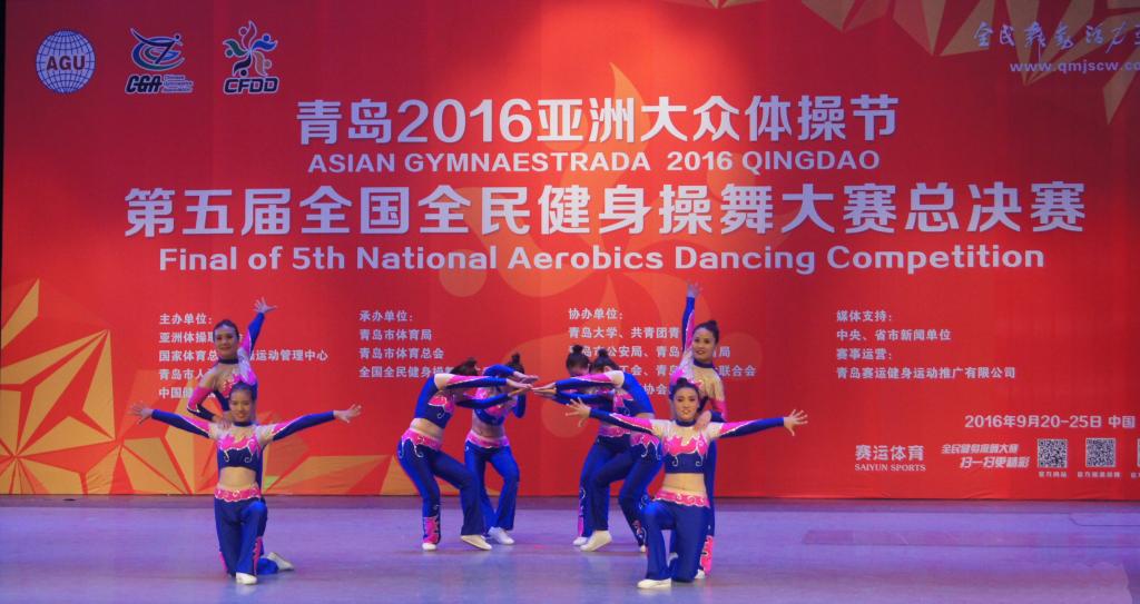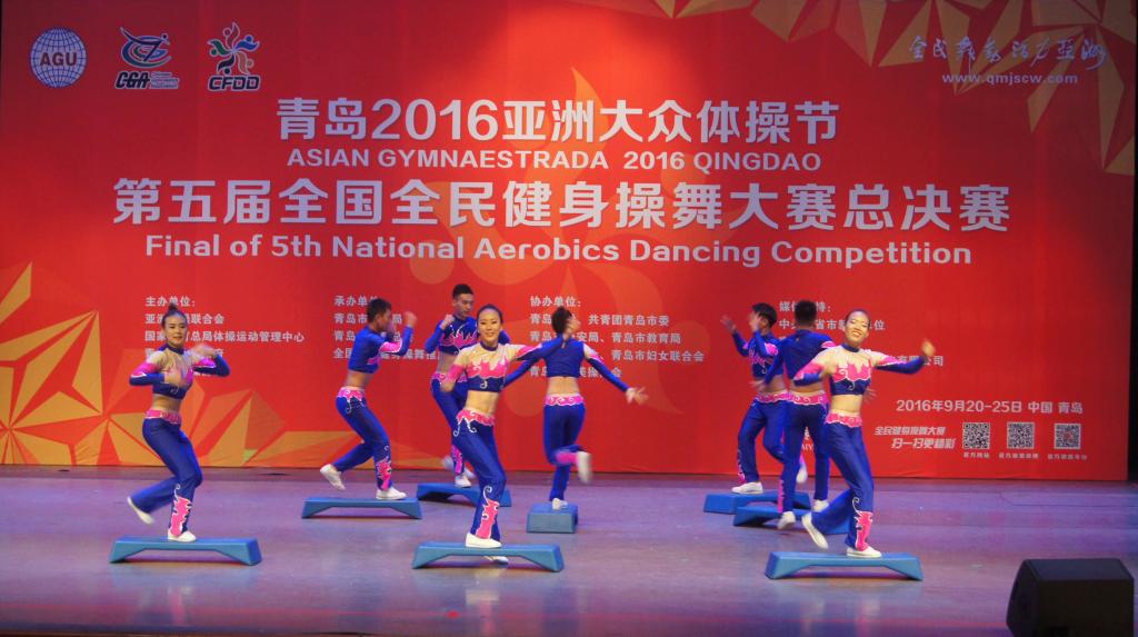 由国家体育总局、中国健美操协会和青岛市人民政府联合主办的2016亚洲大众体操节暨第五届全国全民健身操舞大赛总决赛,于2016年9月20日--25日在青岛大学隆重举行。来自中国、芬兰、日本、韩国、马来西亚、澳大利亚、荷兰、香港等8个国家和地区以及全国31个省(市)、自治区8700余名运动员参加展演和比赛。本次展演和比赛是目前我国健美操中项目设置最多、比赛规模最大的赛事。91直播
