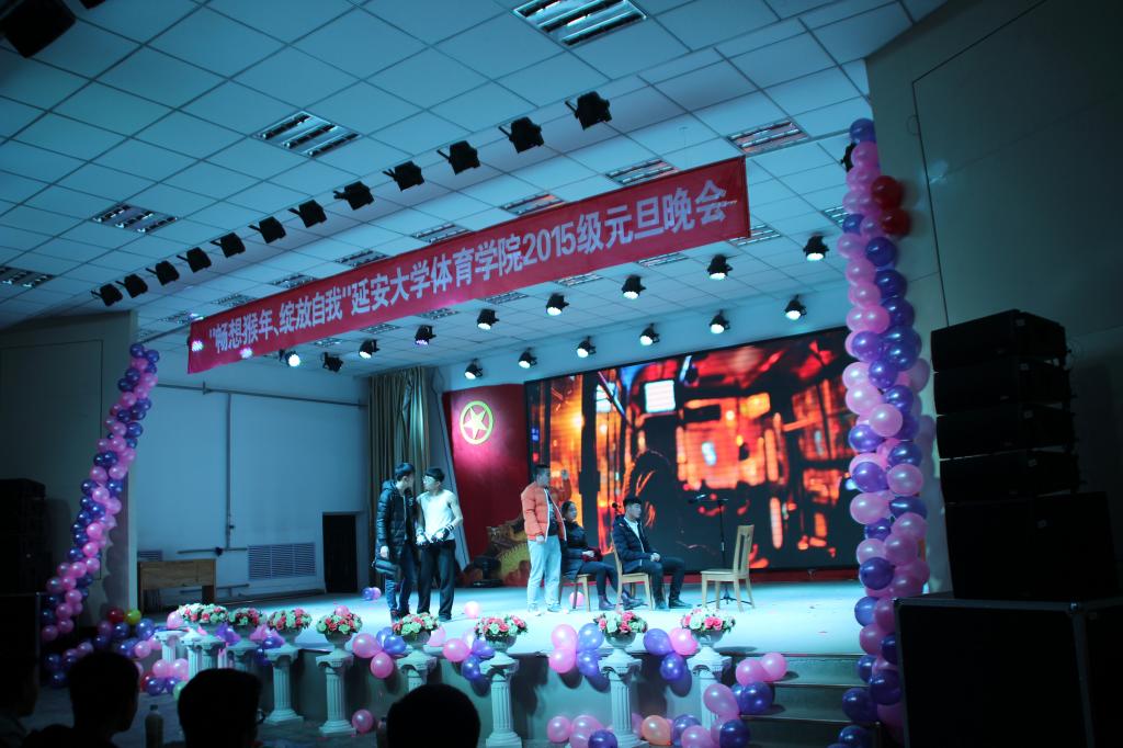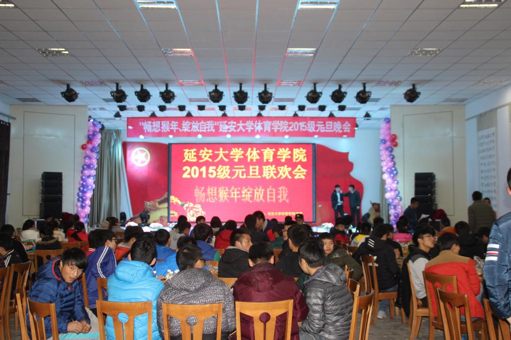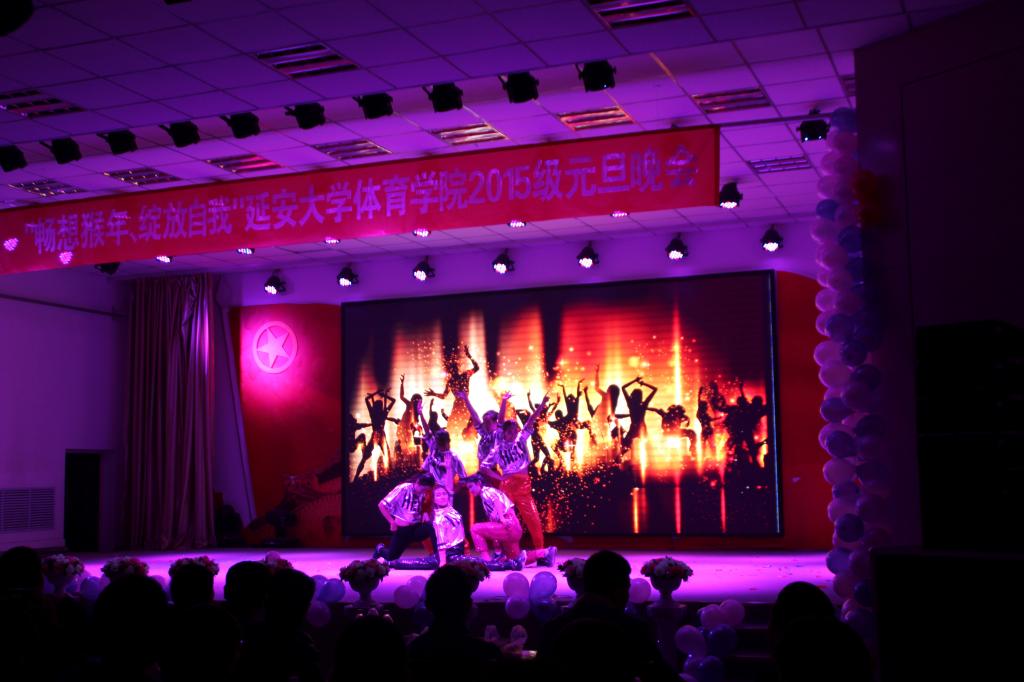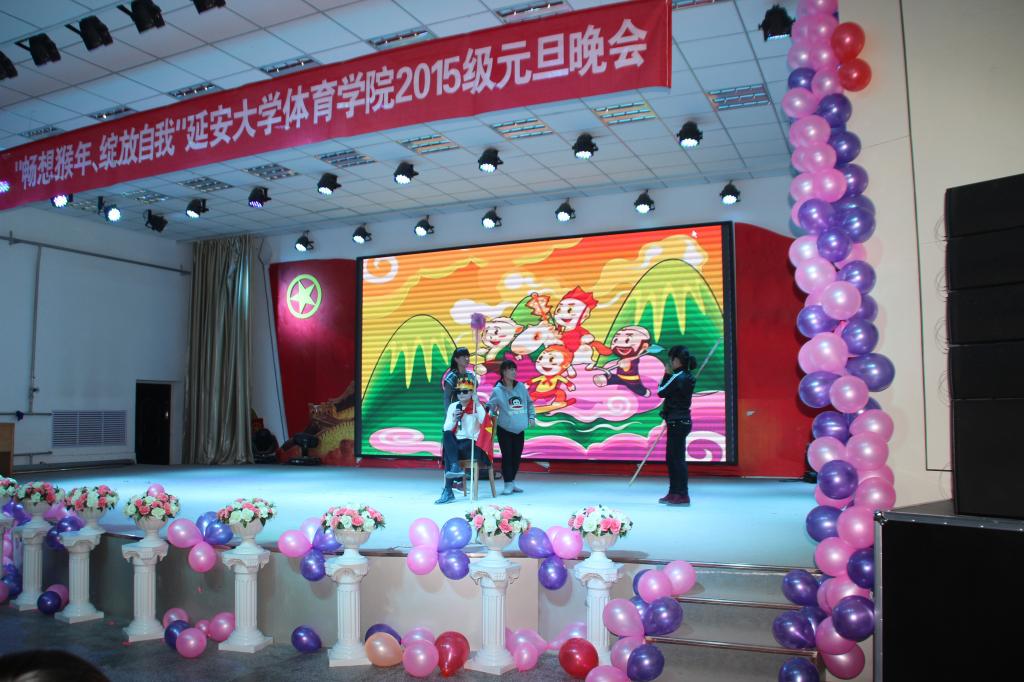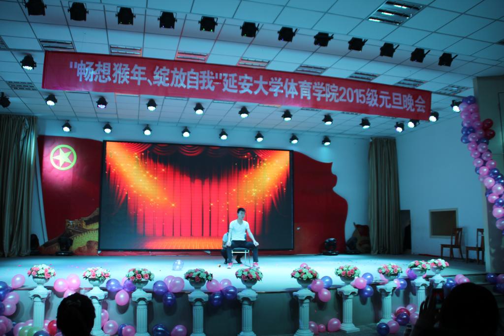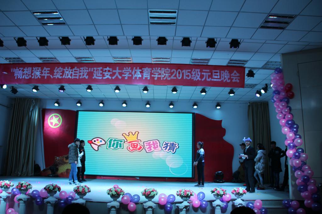 晚会伊始,纪录15级同学入学后点点滴滴的小视频让同学们回顾了半年来的细节,感受了自己的成长。紧接着的B-BOX用强有力的节奏撞击点燃了同学们的热情,踩着B-BOX节奏而来的《街舞少年》则用青春与活力燃爆全场。同样的,舞蹈《DIE DUANG》和《潇洒小姐》也彰显了体院学子的青春洋溢与活力四射,不断的把联欢会的气氛推向高潮。歌曲《那些花儿》、《红玫瑰》、《斑马斑马》、《阴天快乐》、《怎样》、《Nothing’s gonna change my love for you》、《朋友的酒》用清新动人的旋律征服了同学们的耳朵,引来了阵阵喝彩。而小品《大话西游之考研》、《公交车上》和双簧《跳水》则负责为同学们抖包袱、添笑料,欢声笑语不绝于耳。两轮游戏环节则分别由辅导员和学长学姐带队比拼,同学们积极参与,热闹非常。节目组还贴心的为大家准备了瓜子花生,水果饮料,联欢会在经典的《难忘今宵》的旋律下圆满结束。