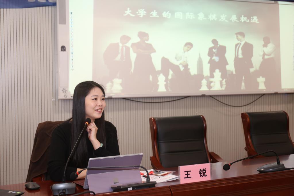启动仪式结束后分别由刘瑶分享《大学生的国际象棋发展机遇》和王锐《中国国际象棋技术等级与青少年训练体系简介》的专题讲座。