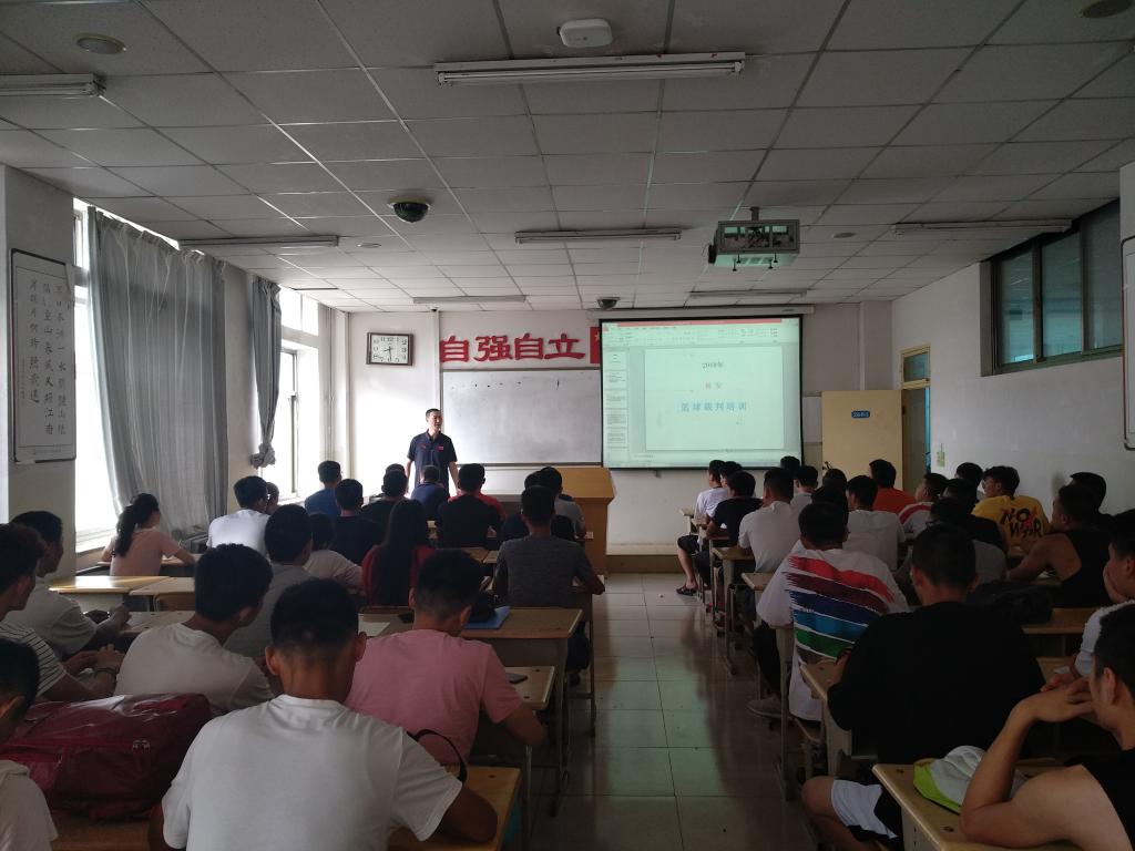 2018年7月17日上午,由延安市篮球协会主办的篮球裁判员短期培训班在91直播 顺利开班。本次培训开班仪式由延安市篮协书记王彦新主持,延安市篮协主席师林峰,91直播 副院长宗有智,延安市篮协裁判委员会负责人焦三旗等参加了开班仪式。