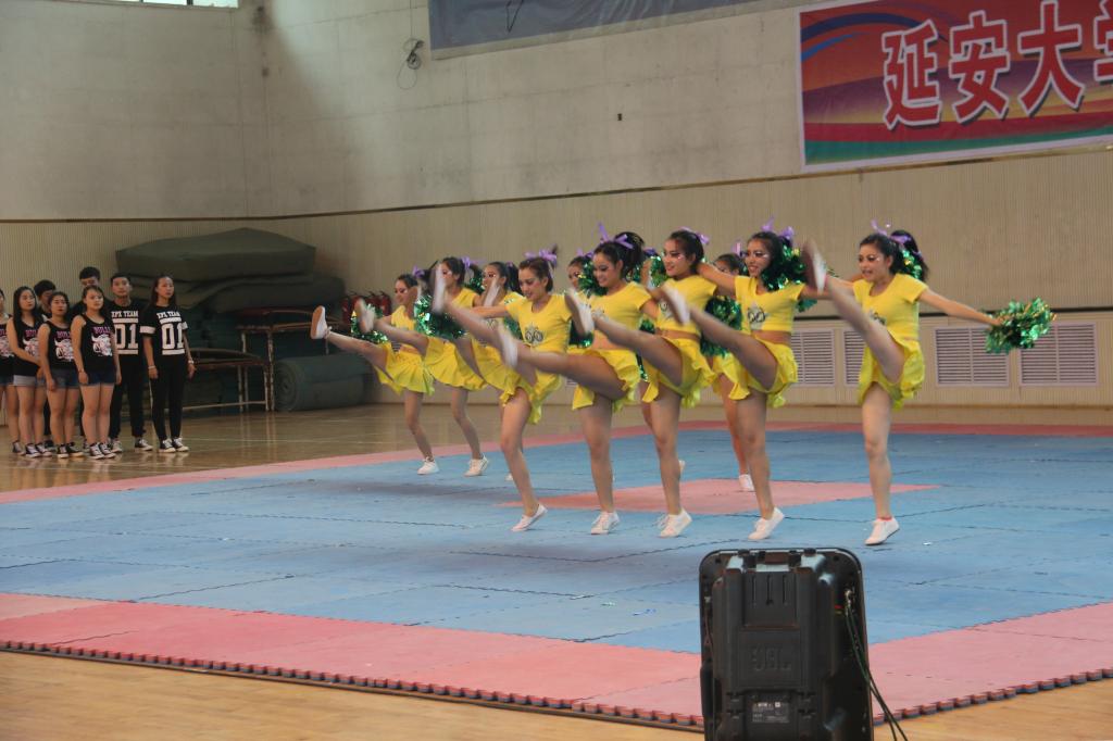 这次比赛共有11个学院的400名运动员参加。比赛的项目包括健身健美操规定动作、花球啦啦操规定动作、街舞啦啦操规定动作、自编动作等。