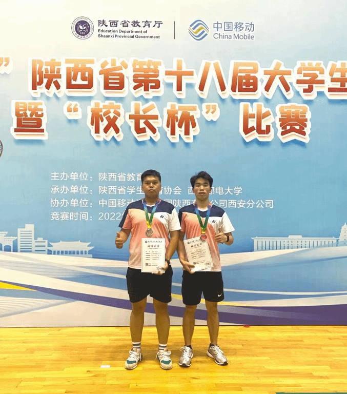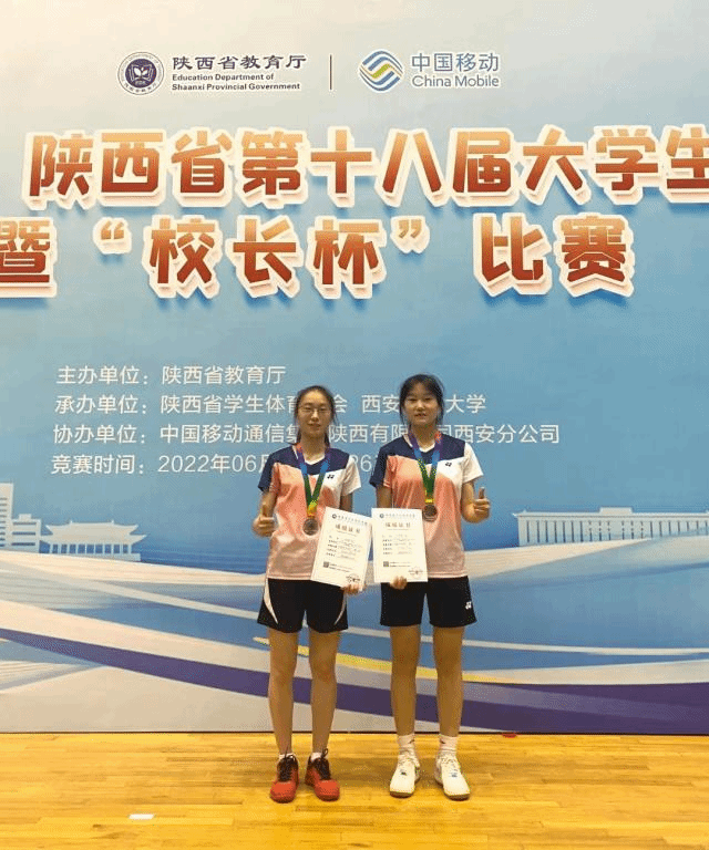 参加陕西省大学生羽毛球比赛的最好成绩。