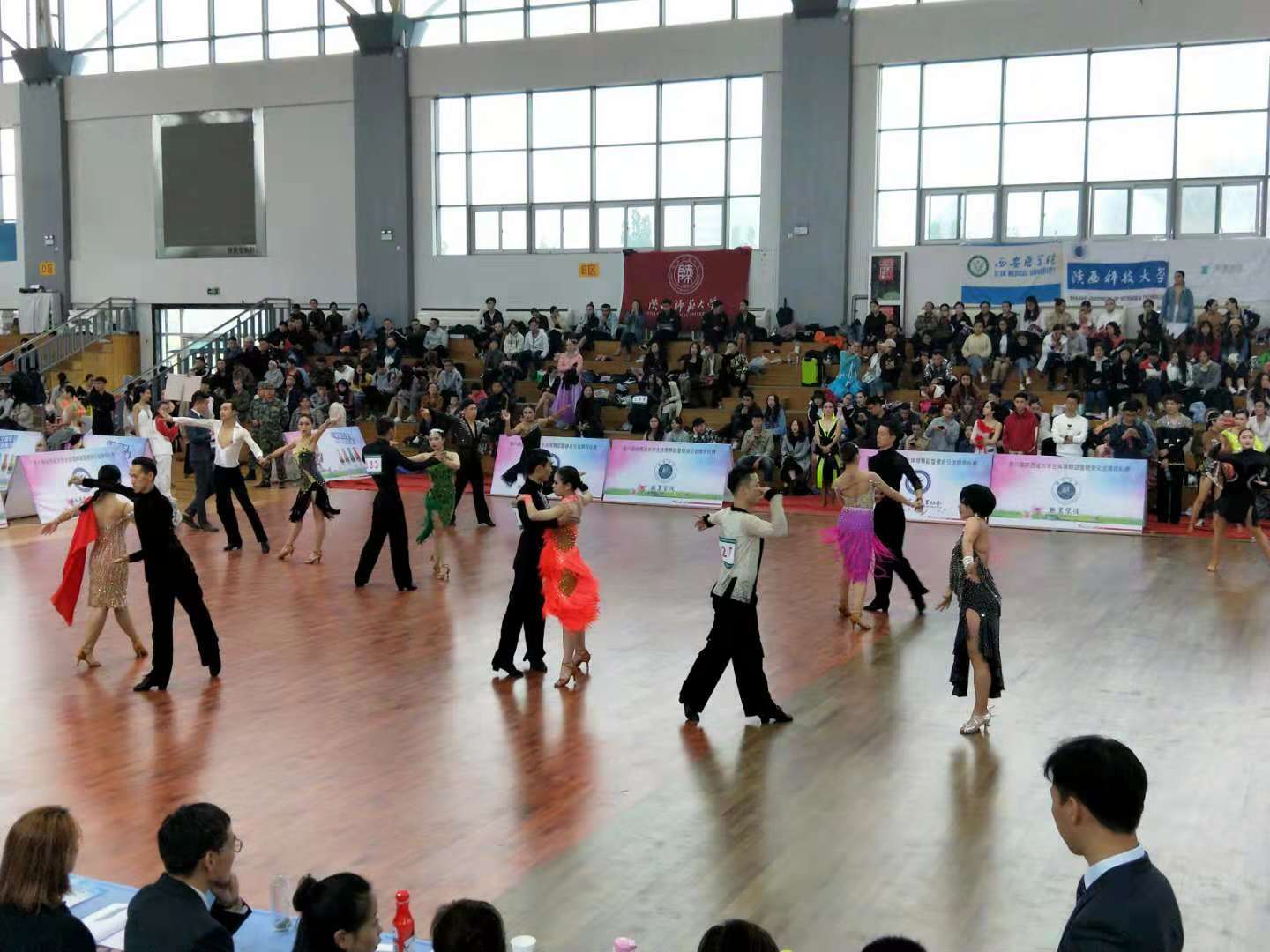 月13-14日,由省教育厅主办,省学生体育协会、西京学院承办的第八届陕西省大学生体育舞蹈暨健身交谊舞锦标赛在西京学院体育馆举行。本次比赛有(陕西师范大学、西北大学、长安大学)等来自全省的二十四所高校共800多人参赛。
