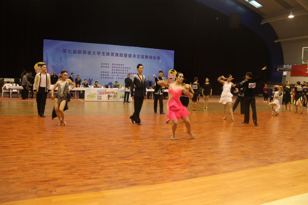 11月11日,由省教育厅主办,省学生体育协会、西安建筑科技大学承办的第七届陕西省大学生体育舞蹈暨健身交谊舞锦标赛在西安建筑科技大学(雁塔校区)体育馆举行。本次比赛有来自全省的二十六个高校代表队800多人参赛。