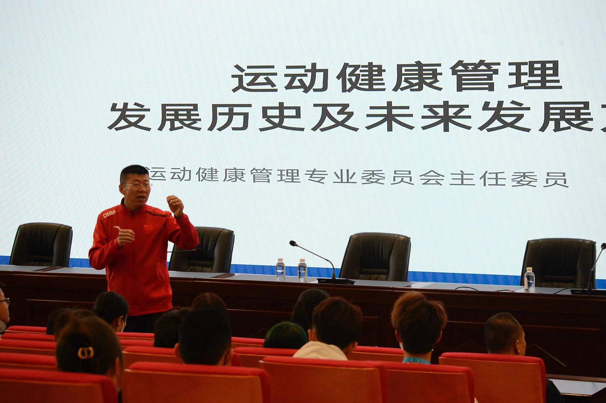 中国健康管理协会运动健康管理专业委员会主任委员、中国人民大学副教授、奥运冠军体能教练吴广亮作了《运动健康管理发展历史及未来发展方向》专题报告。