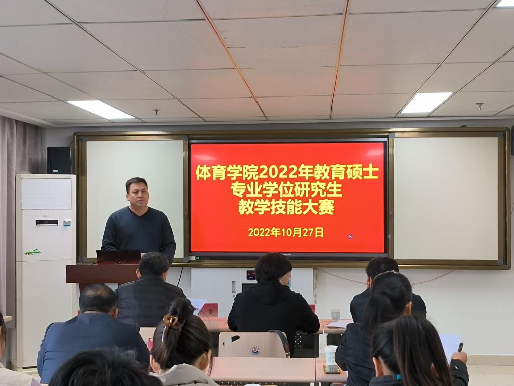在研究生教室举行了2022年教育硕士专业学位研究生教学技能大赛。担任本次大赛的评委杜春斌、马永军、杨学达、张红玲、王军棉5名副教授,薛亚东副院长主持大赛,在校体育教育训练学研究生和体育教育专业本科生观摩比赛。
