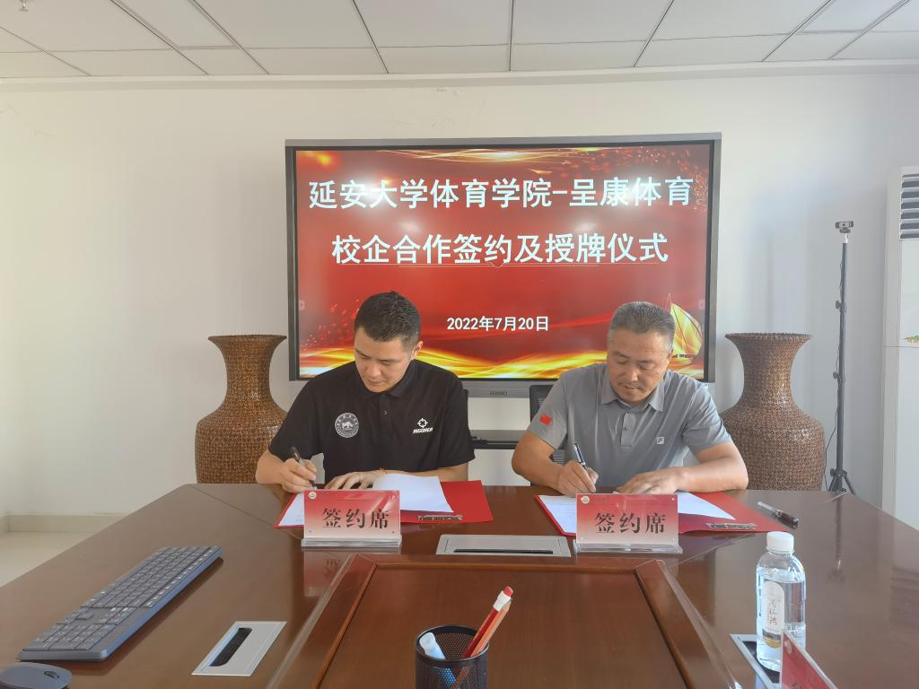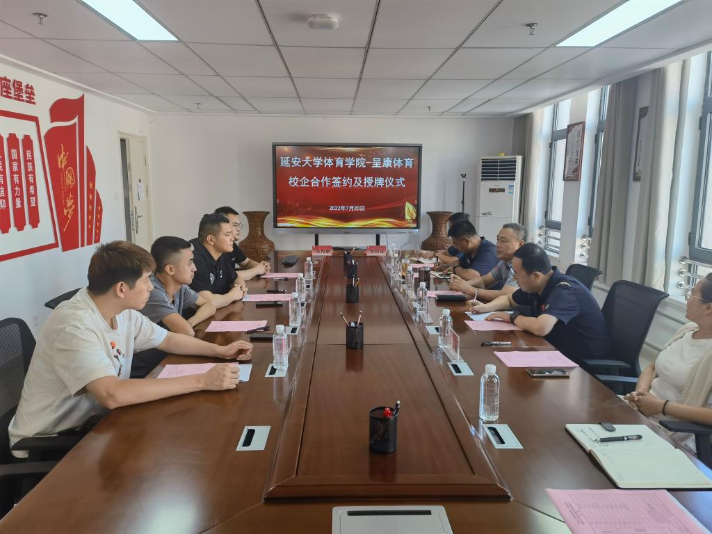在学院党员活动室举行校企合作协议签约及大学生实习就业基地授牌仪式,呈康体育西安分公司、西安冬俊体育发展有限公司总经理董茂伟、区域经理邓磊、区域经理刘远航、人力资源经理严锦杰,*91直播