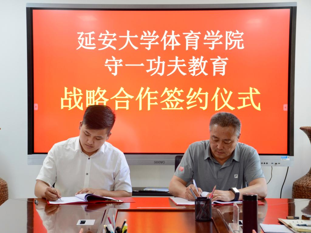 在学院党员活动室举行战略合作战略合作签约仪式,守一功夫教育总经理孙鑫龙、延安校区负责人承保政、榆林校区负责人王世阳,*91直播
