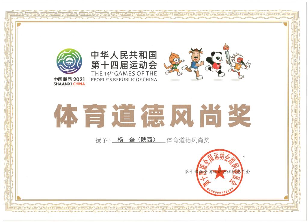 社体系主任杨磊受中华人民共和国第十四届运动会乒乓球竞赛委员会邀请,参与乒乓球比赛执裁工作,获得“体育道德风尚奖”荣誉称号。杨磊现为国家乒乓球一级裁判员,陕西省乒乓球裁判员委员会委员,近年来多次参加省级乒乓球比赛执裁工作。