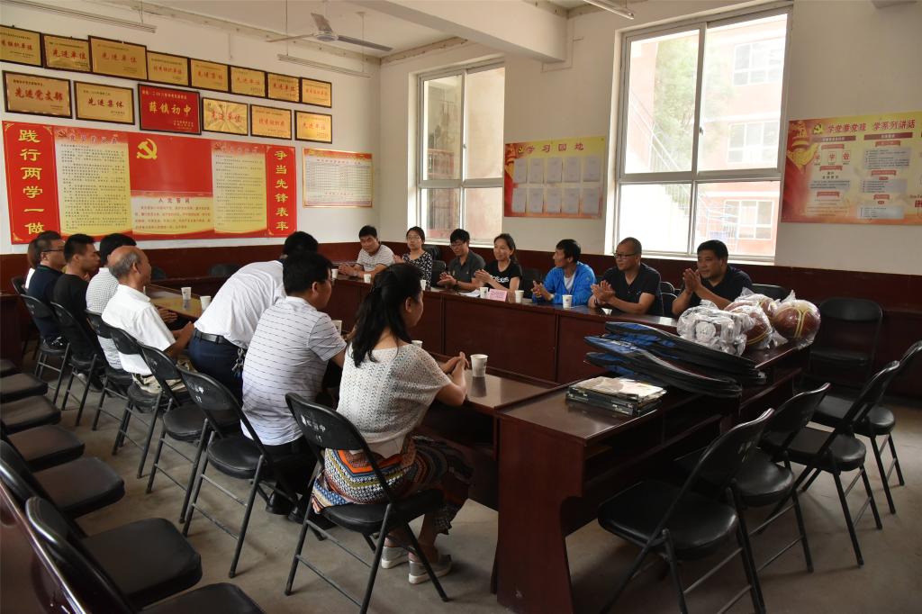 党政领导班子抵达富平县薛镇初级中学,与富平县教育局局长杨新房、薛镇初级中学校长褚英及部分教师召开重点帮扶座谈会。会议由*91直播