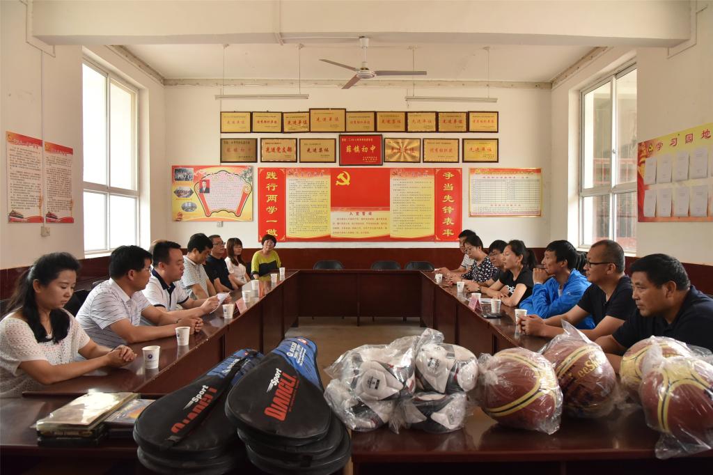 向薛镇初级中学赠送了足球、篮球、乒乓球、毽球、拔河绳等体育用品。