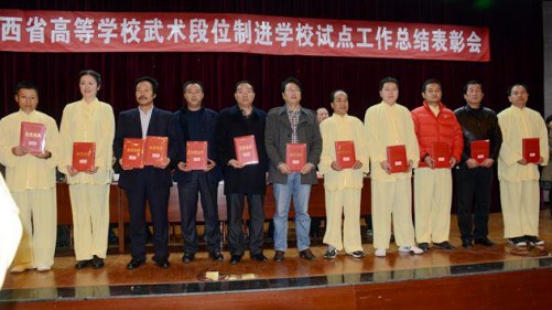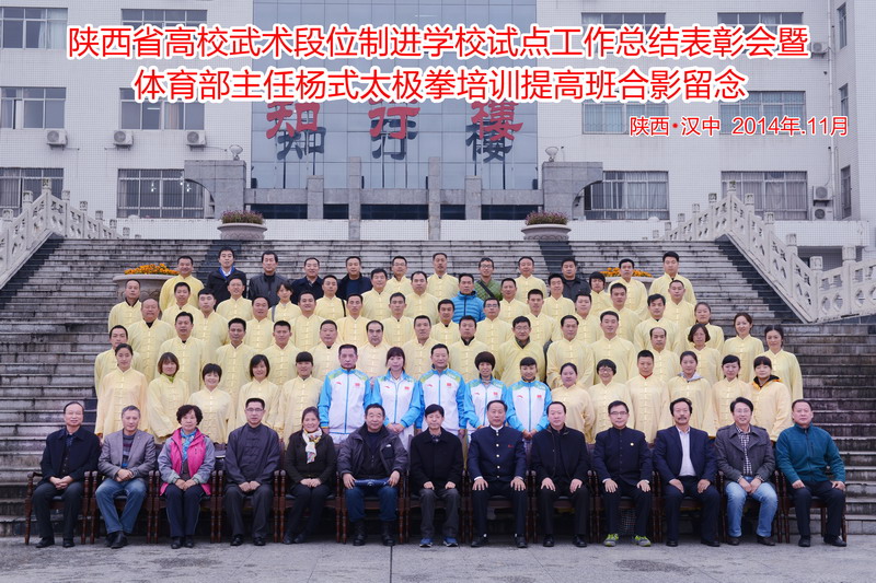 11月24至29日,陕西省武术段位制进学校试点工作总结表彰大会暨高校体育部主任、体育骨干教师杨式太极拳培训提高班在陕西理工学院举行。省教育厅、省体育局相关领导出席了本次表彰大会,陕西理工学院副校长出席会议并致欢迎辞。包括91直播