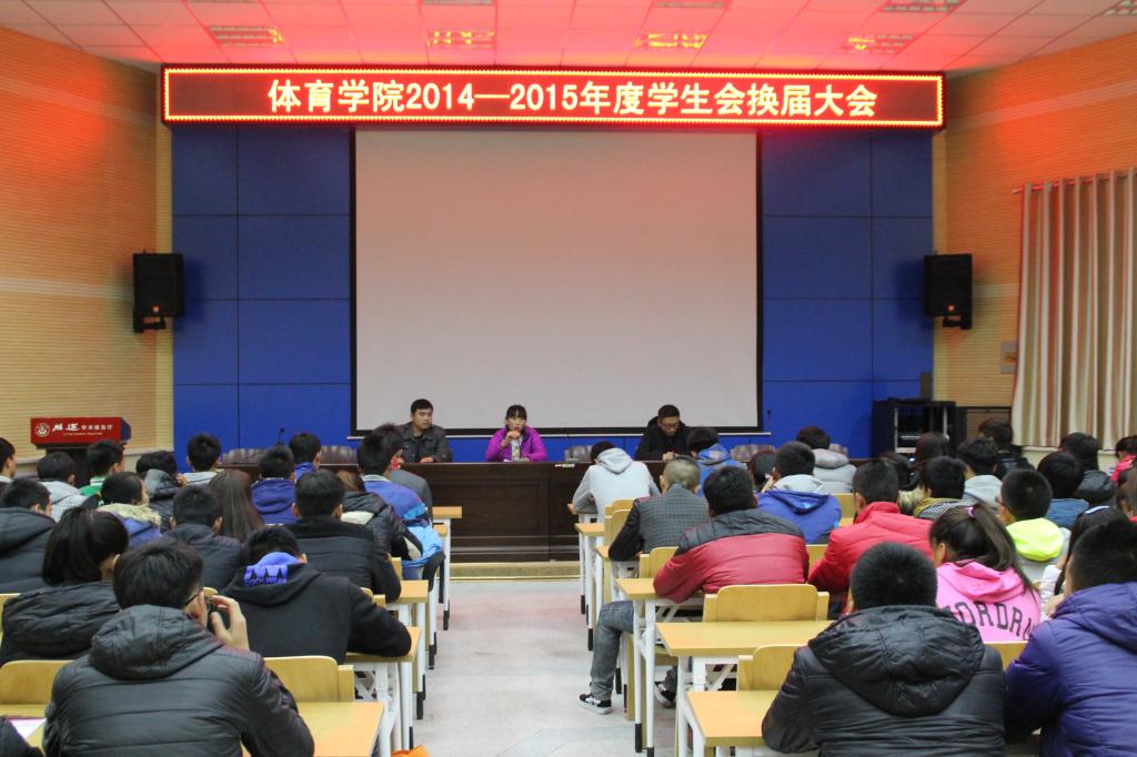 2014年度学生会换届大会在路遥学术报告厅举行,出席本次大会的有:学院党委副书记梁艳老师、团委书记刘金辉老师、辅导员赵广宇老师,以及新一届学生会全体成员和学院全体班级干部。会议由赵广宇老师主持。