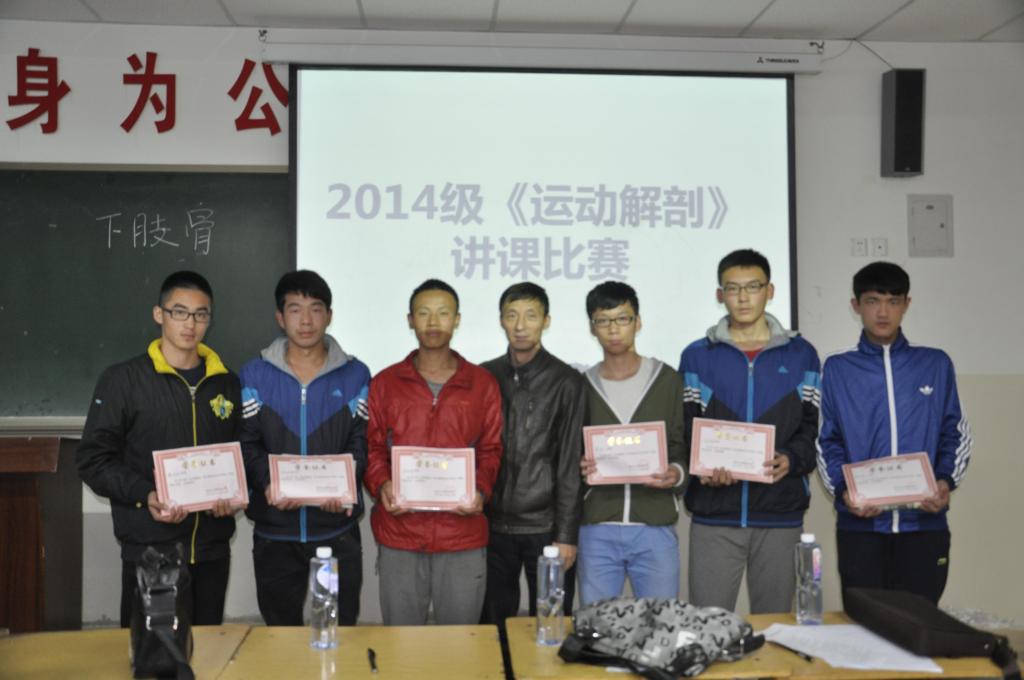 为激发学生学习专业理论知识的积极性,考察学生对专业知识的掌握程度,发挥学生团队协作能力,运动基础理论教研室于2014年11月13日下午在校隆基楼3304教室举行了2014级《运动解剖学》学生赛课活动,院长郑兵、理论教研室主任杨学达和教研室王德志、王小梅五人担任了本次活动的评委,郭振东老师主持了整个赛课活动。