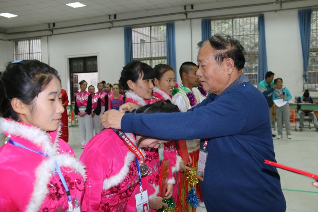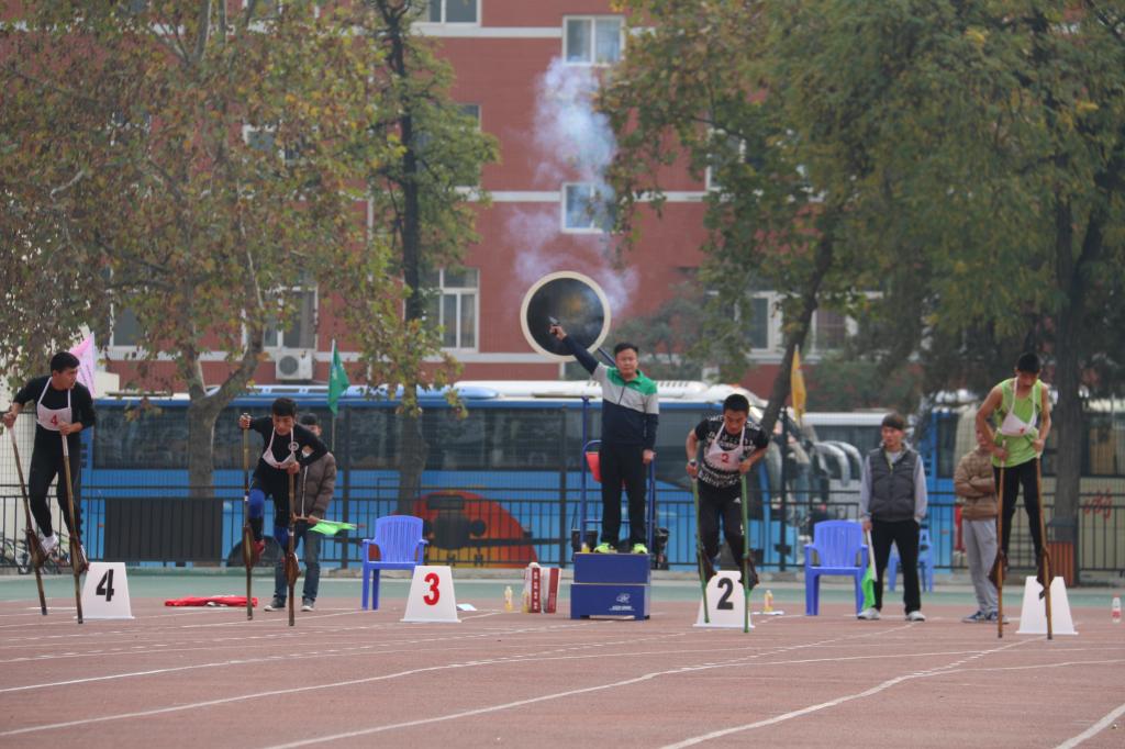 副院长宗有智为团长;杜春斌、马红伟、郝志春、高鹏老师为教练和24名学生组成的代表团,参加了花样跳绳、蹴球、板鞋竞速、高脚竞速四个项目的比赛。