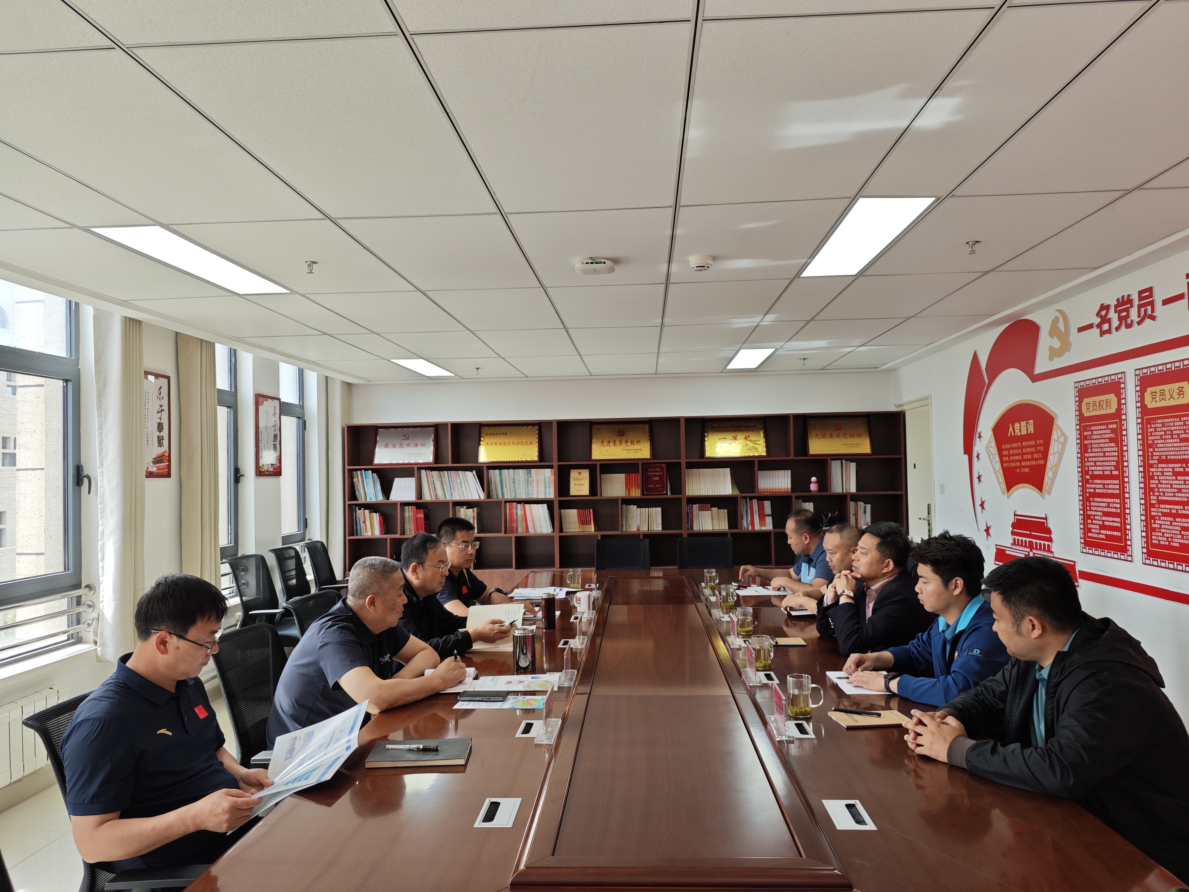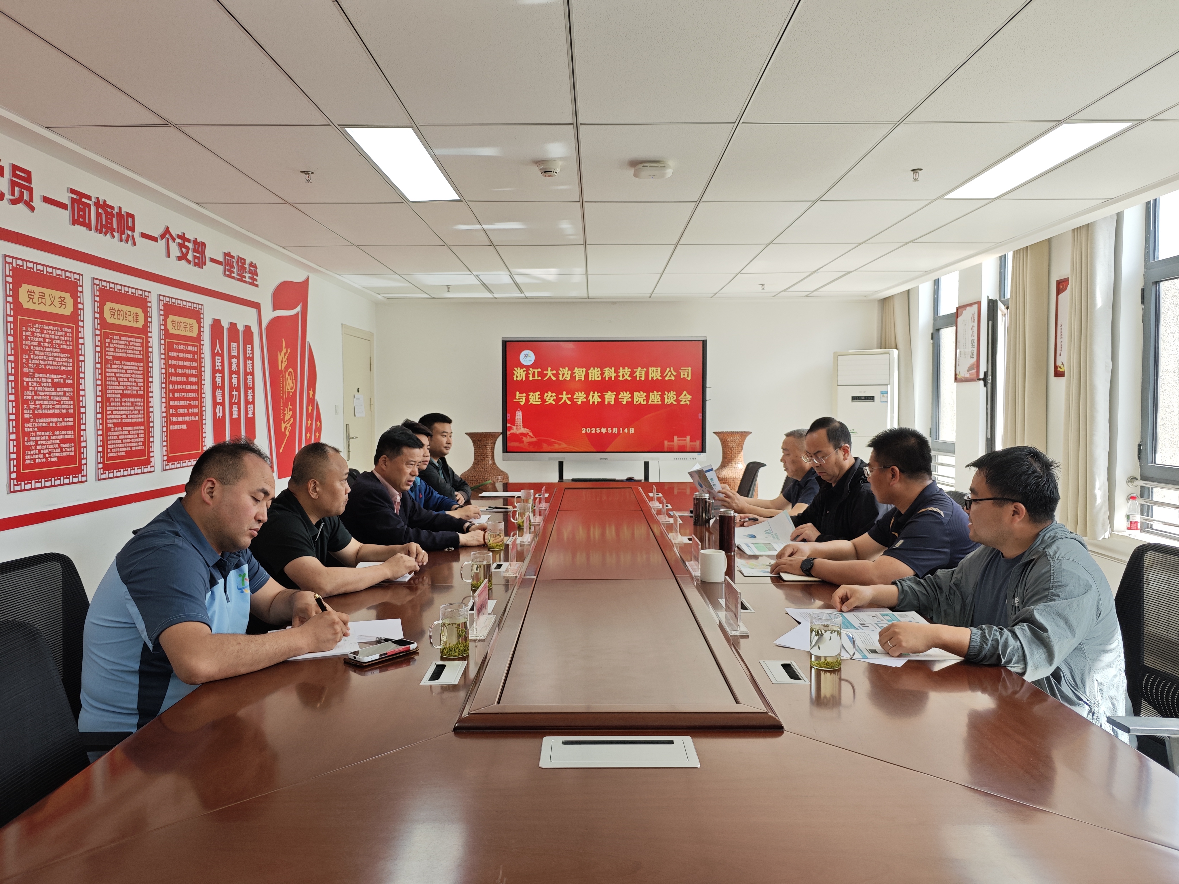 与浙江大沩人工智能科技有限公司校企合作交流会在学院党员活动室举行,浙江大沩智能科技有限公司董事长朱庆丰、行政办主任孙峥岩、董事长助理栾书军,学院党委书记兰鸿涛、院长宗有智、副书记徐海阔、副院长张应龙、组织员李才才参加会议,会议由张应龙主持。