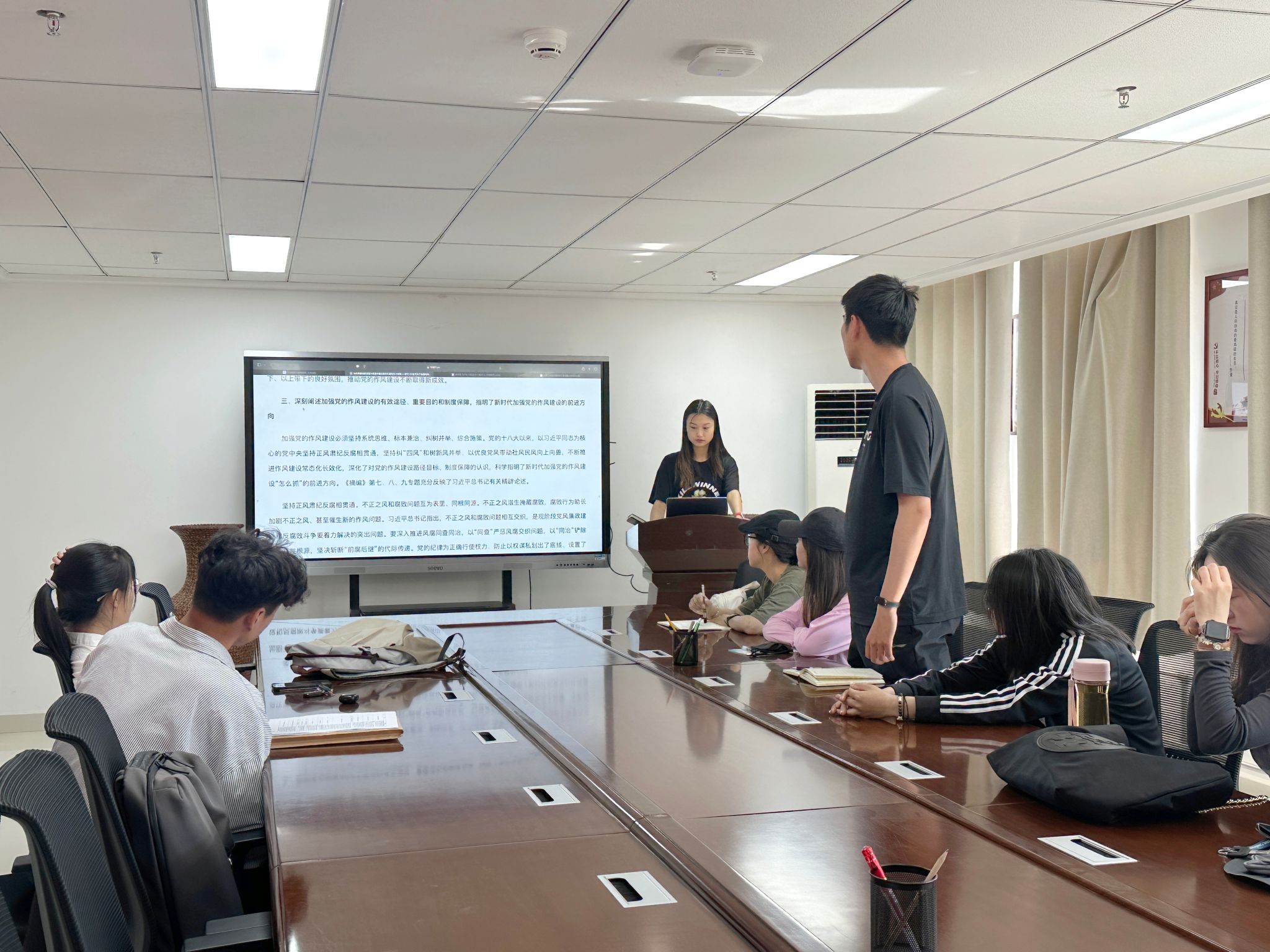 党员同志们结合学习工作实际展开了讨论,党员教师表示,要深刻领会作风建设在全面从严治党中的重要意义,将廉洁自律贯穿于教育教学全过程,以身作则,切实改进工作作风,服务发展大局。学生党员表示,要进一步提高思想认识,增强廉洁自律意识,严守纪律规矩,要以案为鉴,时刻绷紧纪律之弦,在学思践悟中铸牢绝对忠诚,坚定理想信念和使命担当。