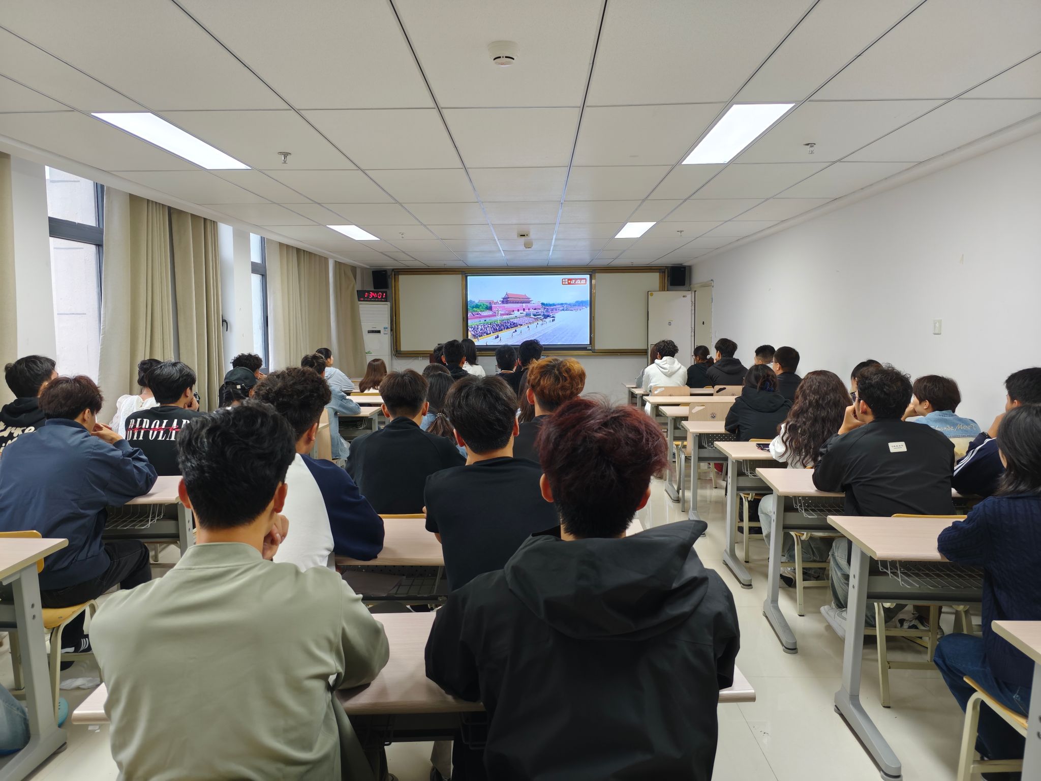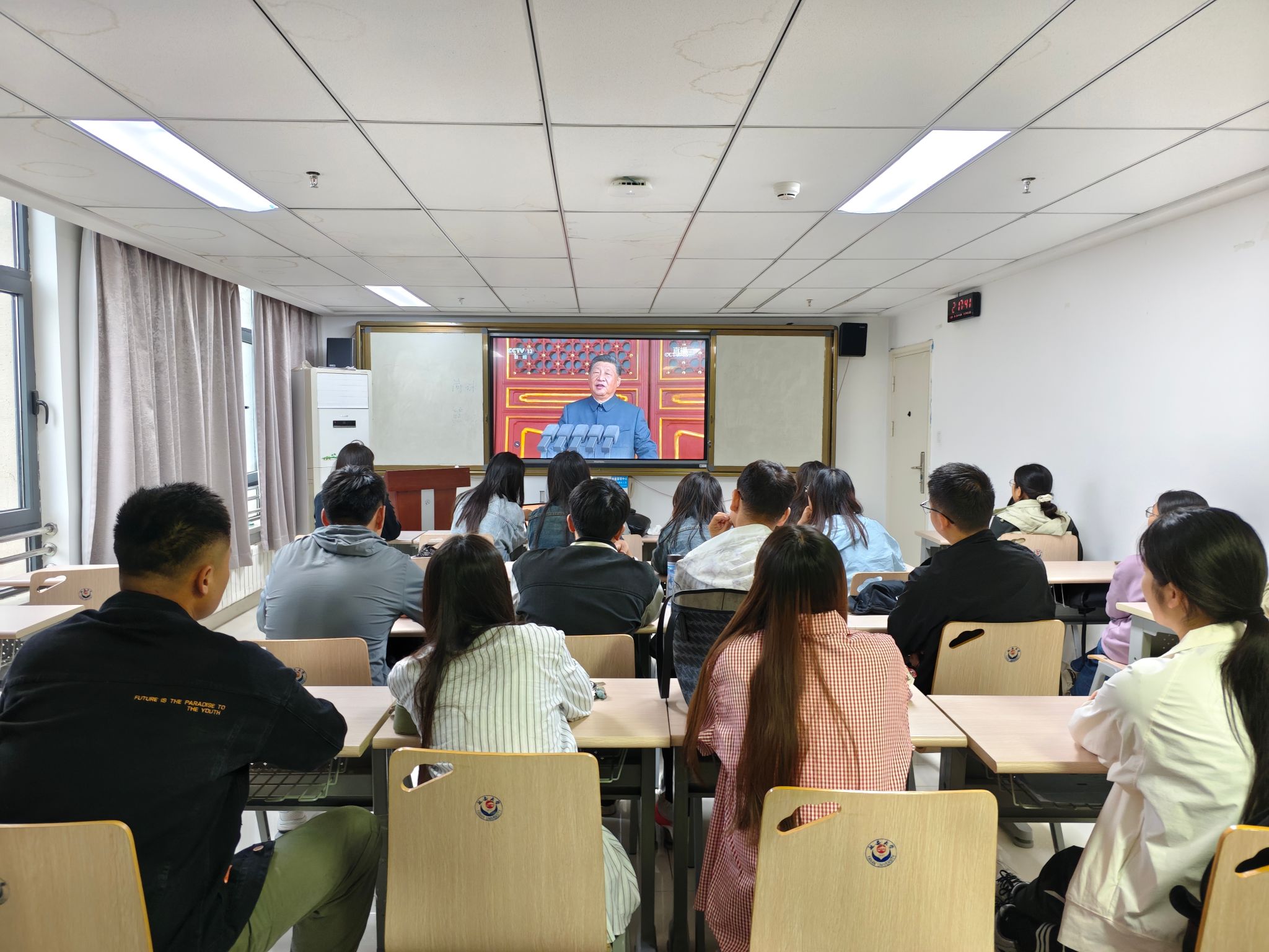 上午9时,全体班子成员在党员活动室观看阅兵盛况,各教工党支部、研究生本科生党支部组织党员在研究生教室观看,各班主任组织班级学生在教学楼教室观看,认真聆听习近平总书记重要讲话。