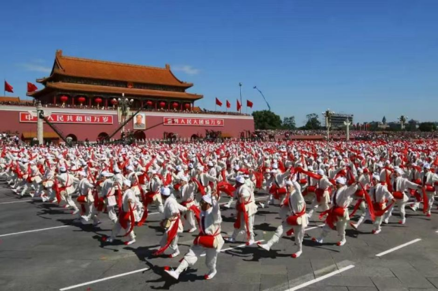 2009年国庆大阅兵现场,安塞腰鼓在天安门广场表演