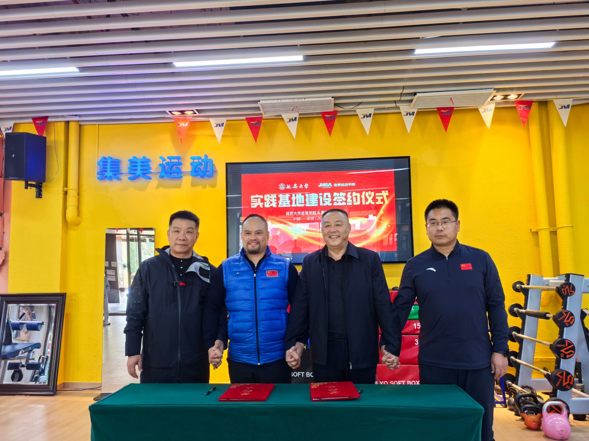 宗有智一行到深圳市集美之光健康科技有限公司实地考察,并与董事长张旭、总经理杨亚以及部门负责人就基地建设、学科发展、科研合作等进行了深入交流。双方举行了实践基地战略合作协议签约仪式,旨在通过资源共享、优势互补,精准对接市场需求,共同培养适应体育产业发展的高素质应用型人才。