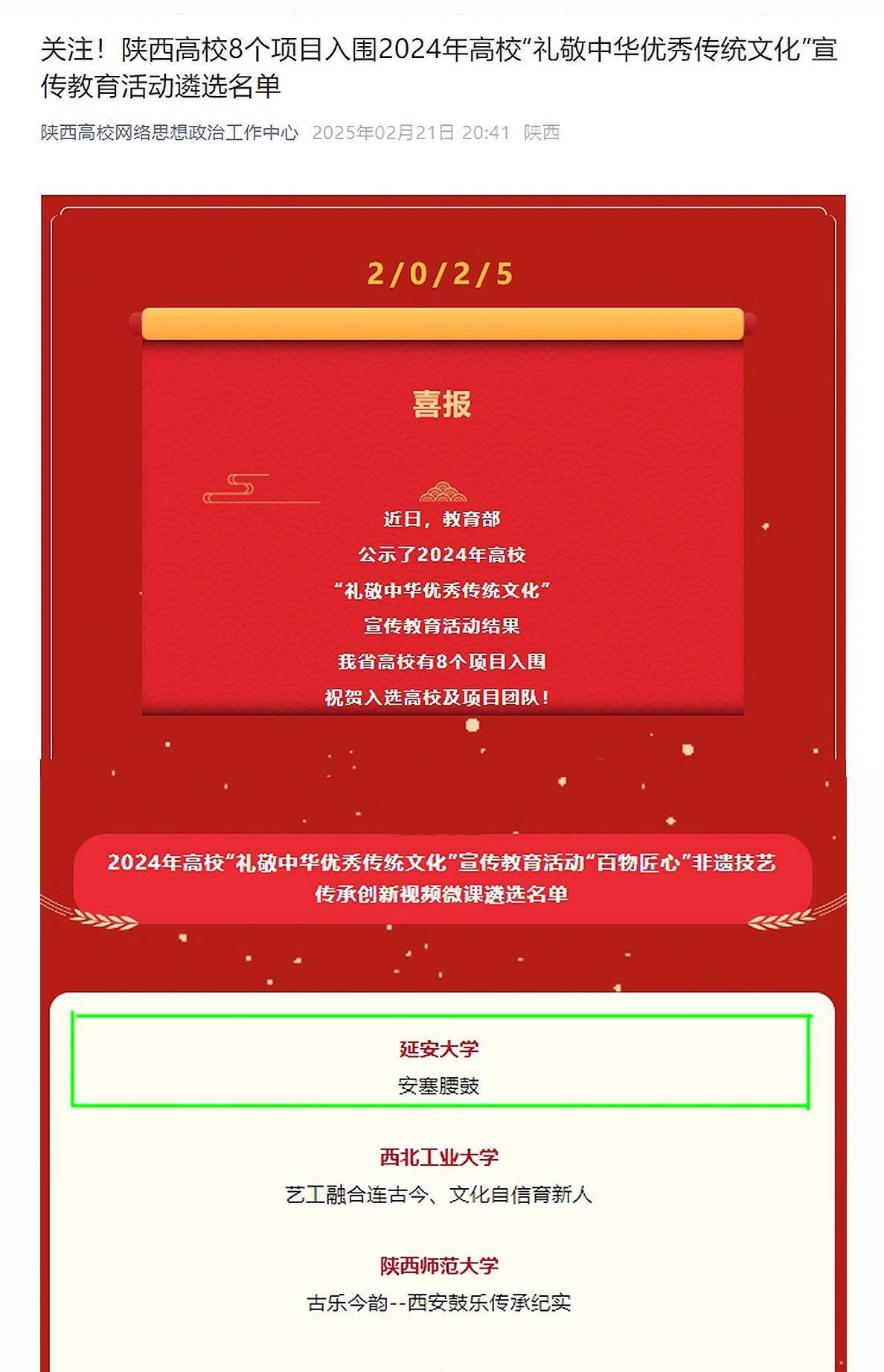 报送的《安塞腰鼓》视频微课成功入选。安塞腰鼓,作为第一批国家级非物质文化遗产,以其磅礴的气势、精湛的技艺和深厚的文化内涵,成为了中国民间艺术的璀璨明珠,享有“天下第一鼓”的盛誉。91直播