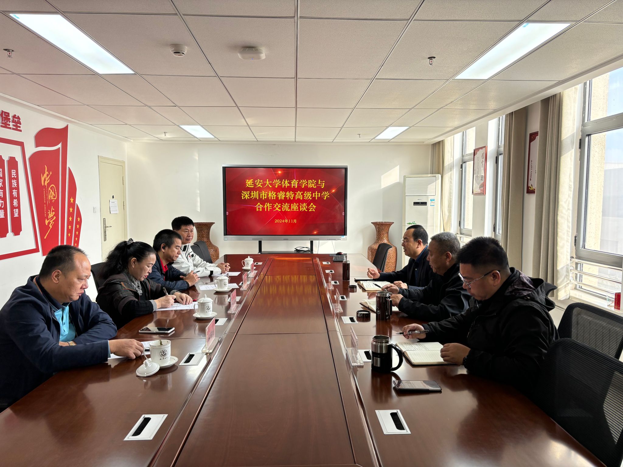 与深圳市格睿特高级中学在学院党员活动室举行合作交流座谈会,深圳市格睿特高级中学校长陈玉斌、董事长李和平,董事会成员林耀新、张建平,学院领导班子成员参加会议。会议由副院长张应龙主持。