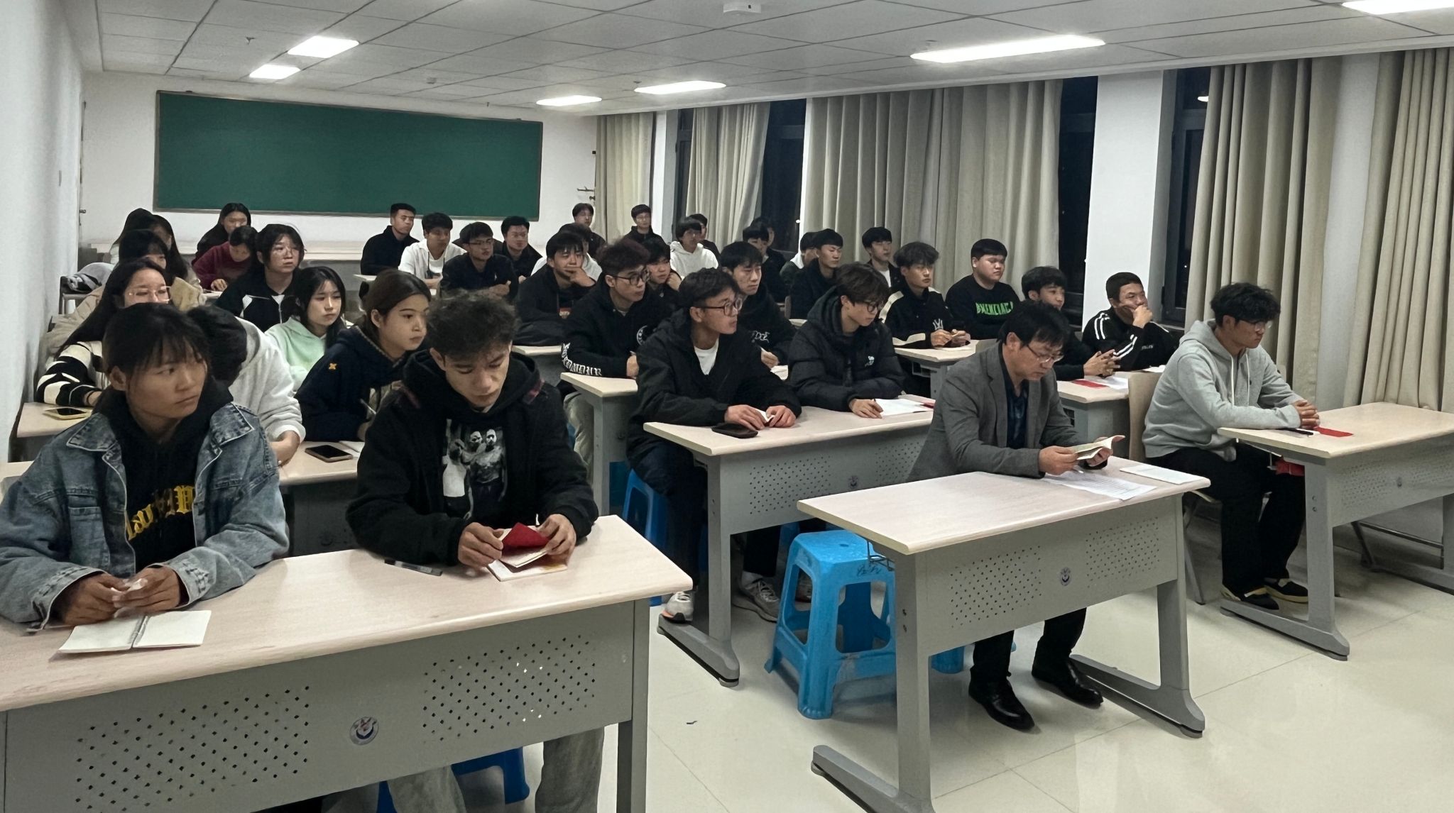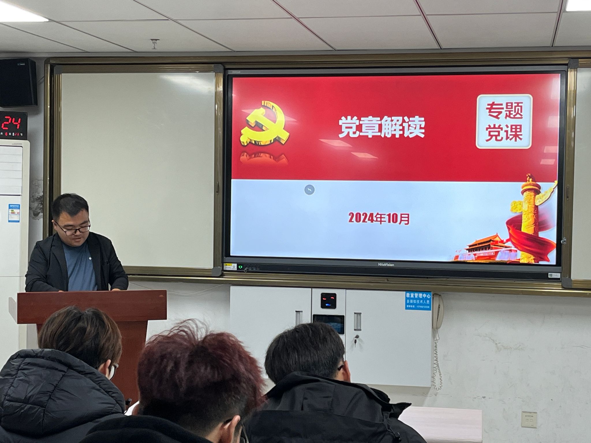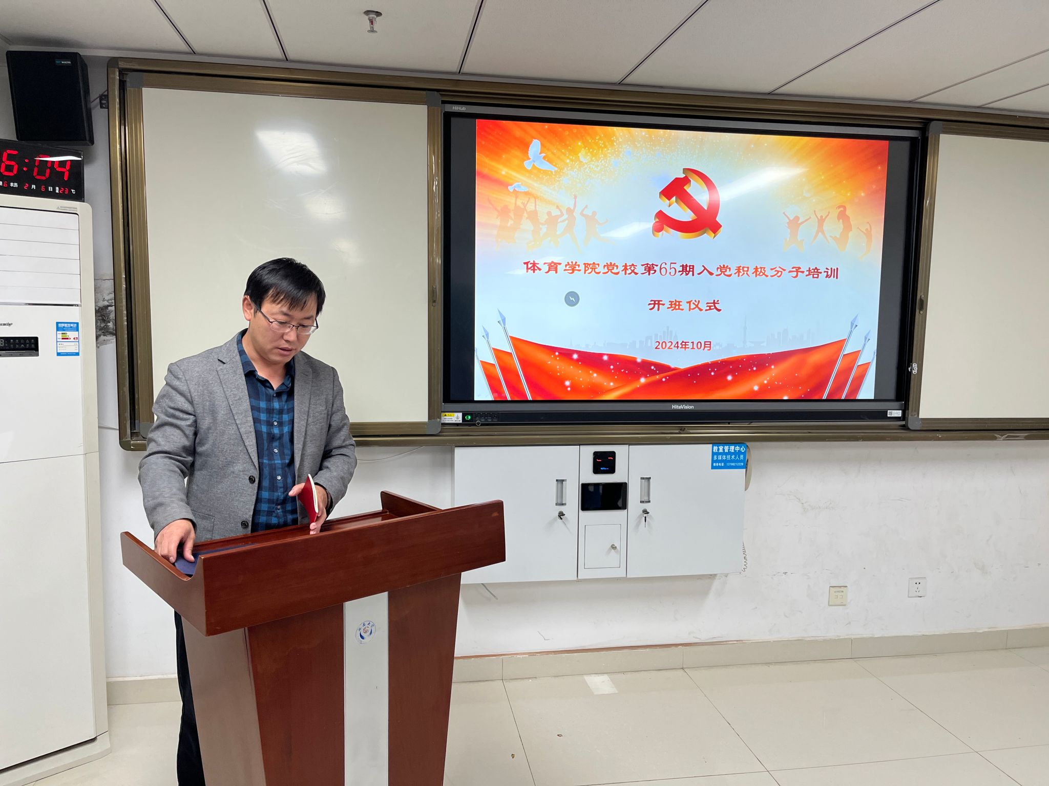 在研究生教室举行了第65期入党积极分子培训开班仪式,学院党委副书记徐海阔、组织员李才才以及全体入党积极分子参加仪式。